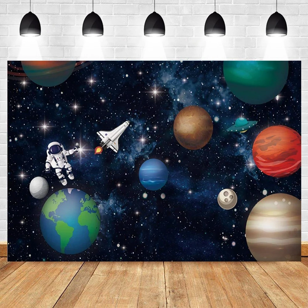 Виниловый фон для фотосъемки новорожденных мальчиков, с изображением Вселенной, земли, космоса, планеты, космонавта