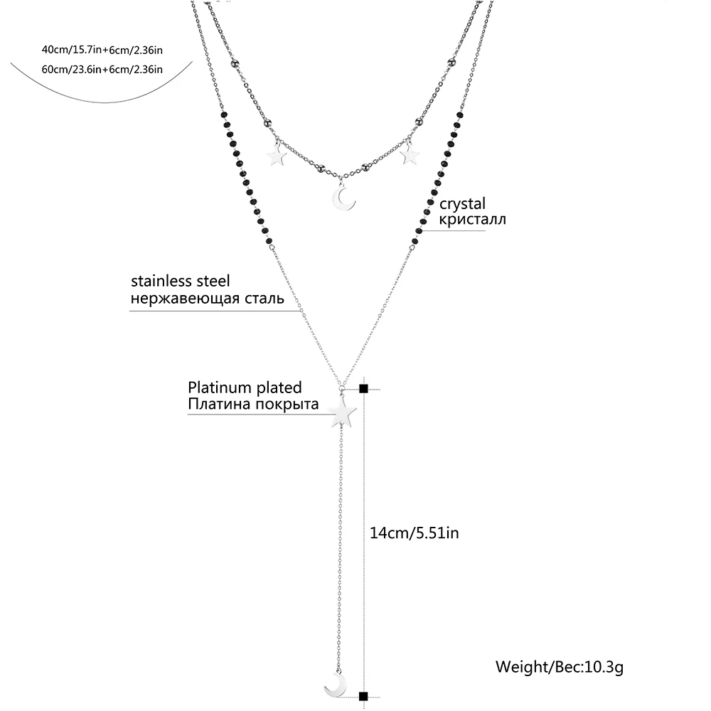Богемное винтажное многослойное ожерелье с полумесяцем и звездами для женщин, ожерелье-чокер с черными кристаллами, модное ювелирное изделие из нержавеющей стали, 2019