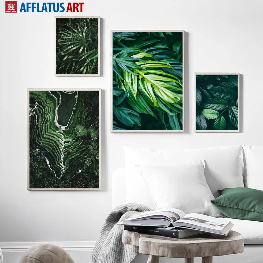 Зеленое растение монстера лес озеро Гора настенная живопись холст с...