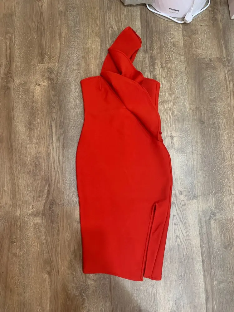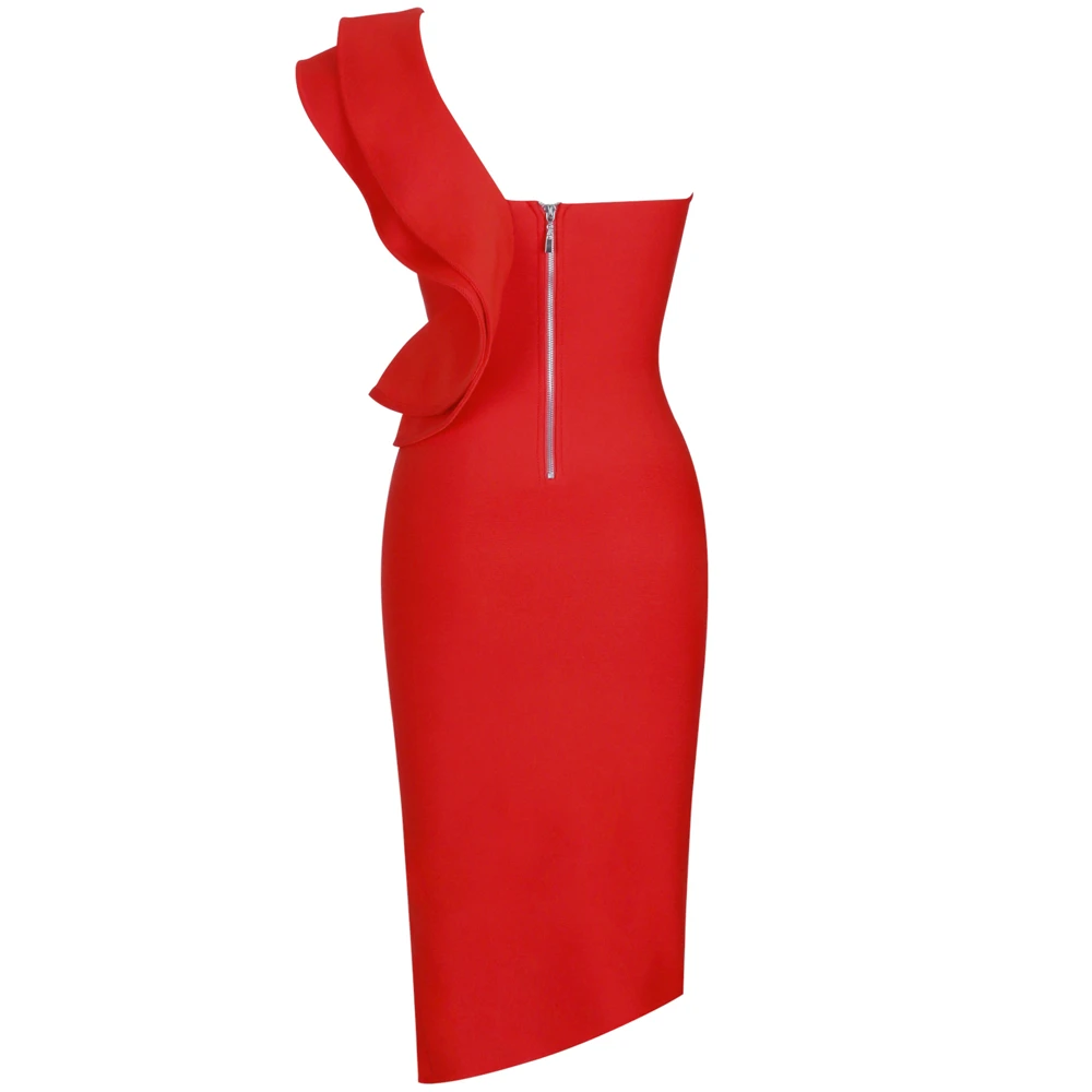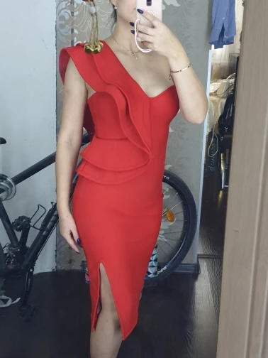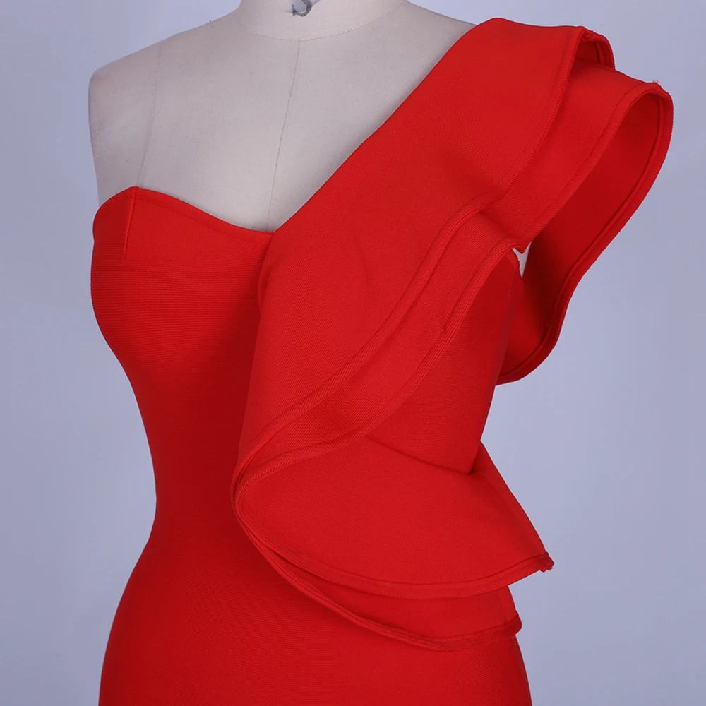 Женское вечернее платье Ocstrade, Бандажное красное платье на одно плечо, черное, с оборками, для клуба, для лета, 2021