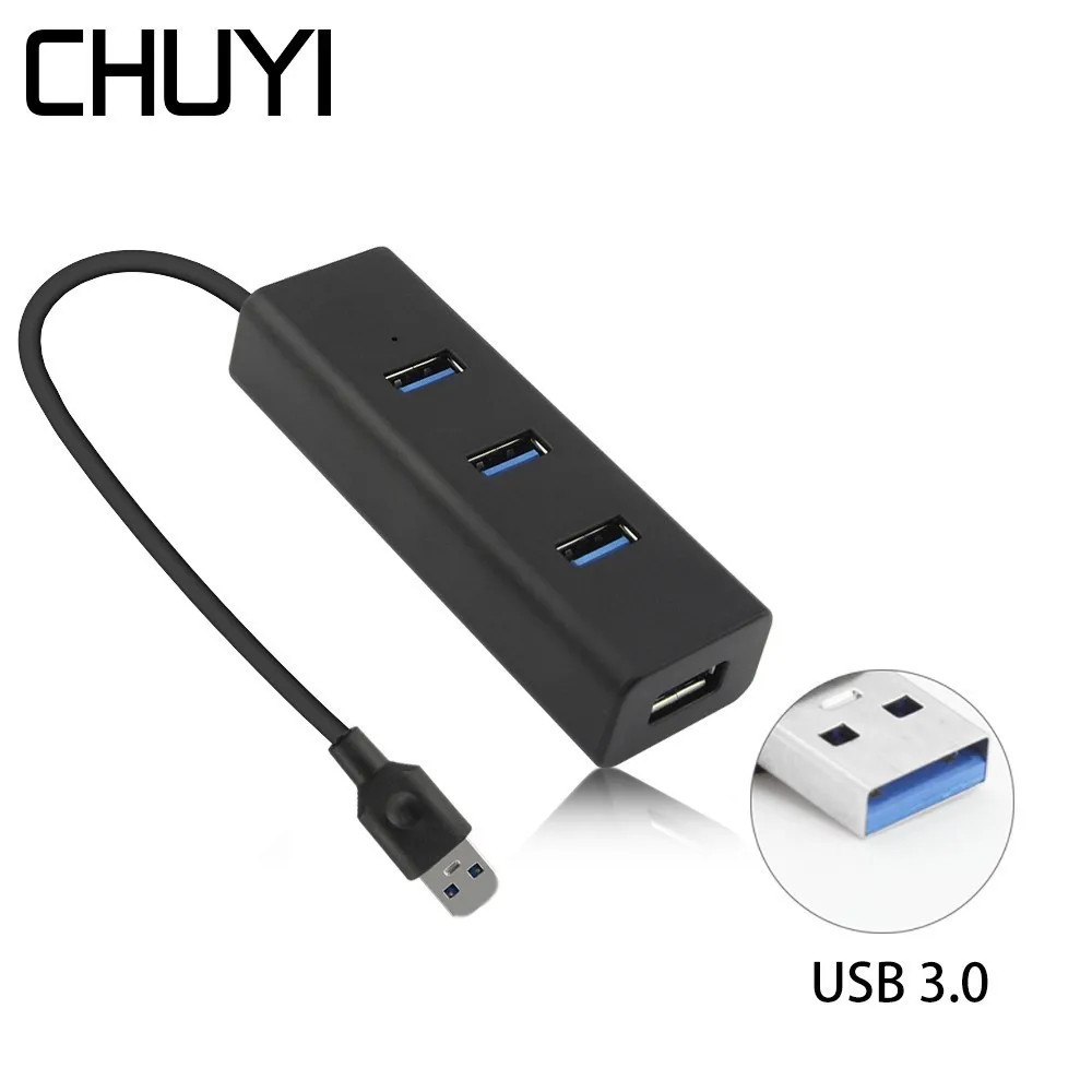 Chuyi Usb3.0 концентратор 4 порта Usb 3,0 высокоскоростной многоразветвитель адаптер Dc 5 v/2a порт источника питания для ПК Аксессуары для мобильных телефонов