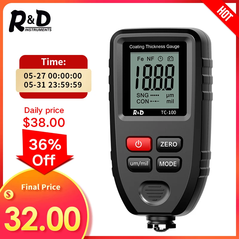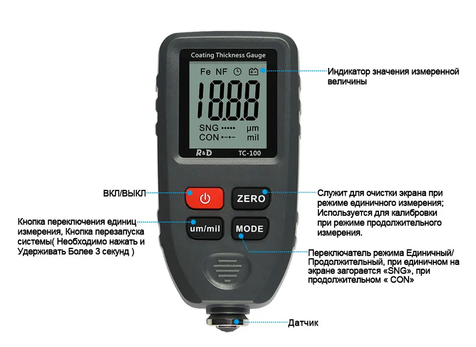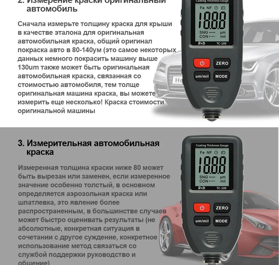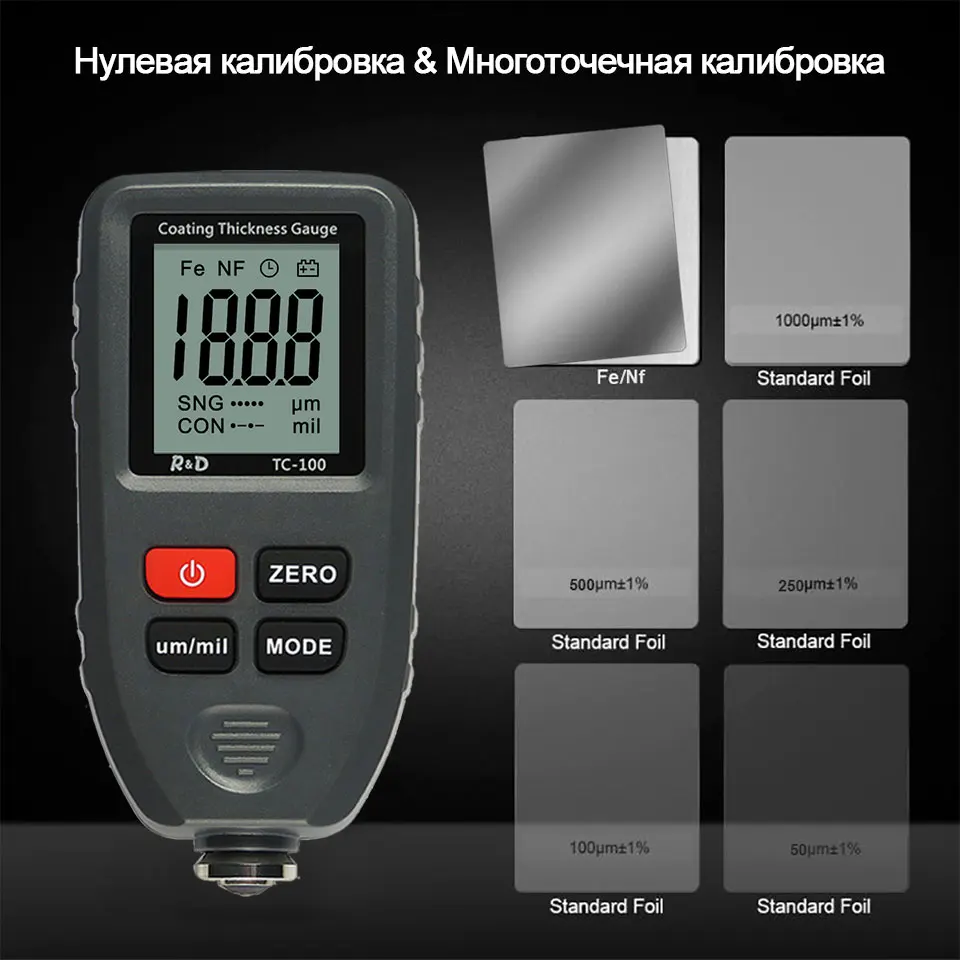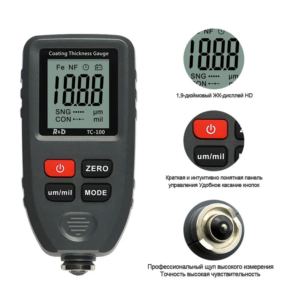 RD TC100 толщиномер покрытия 0,1 микрон0-1300 автомобильная краска пленка тестер толщины измеритель измерения FENFE русский ручной инструмент краски