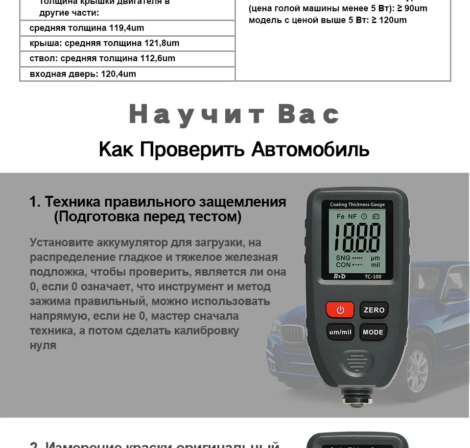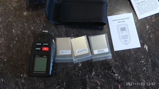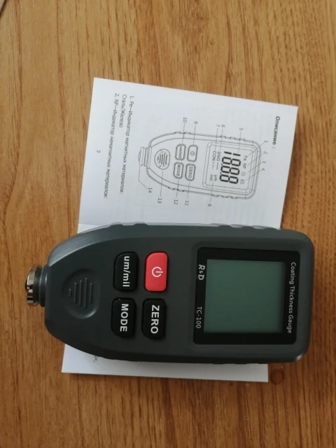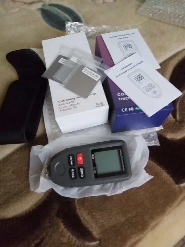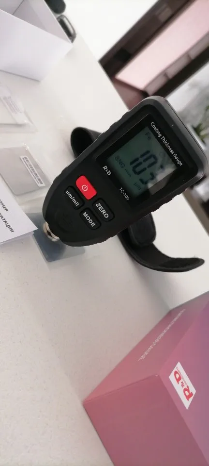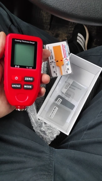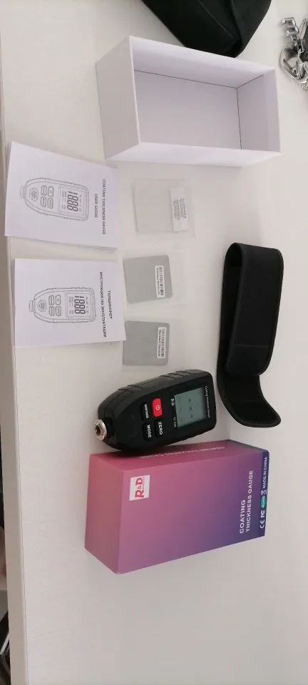 Очень рекомендую и продавца и товар! Я по ошибке заказал товар по старой цене и с Китая, а не с РФ, продавец не спрашивая меня положил не большой, но приятный подарок, за что ему большое спасибо. Продавец общительный. Толщиномер работает на 10 из 5. Я часто меняю машины и для меня он то что нужно. Рабочий диапазон до 1300мкм, мне это более чем достаточно. До этого был дешёвый, на фото видно, так им только шпаклю разглядеть можно. Этим новым я проверил свою машину, и действительно показывает как есть на самом деле. Откалибровать получилось не сразу, потом поставил новую батарею алкалиновую и без проблем его откалибровал. Тощиномер рекомендую!