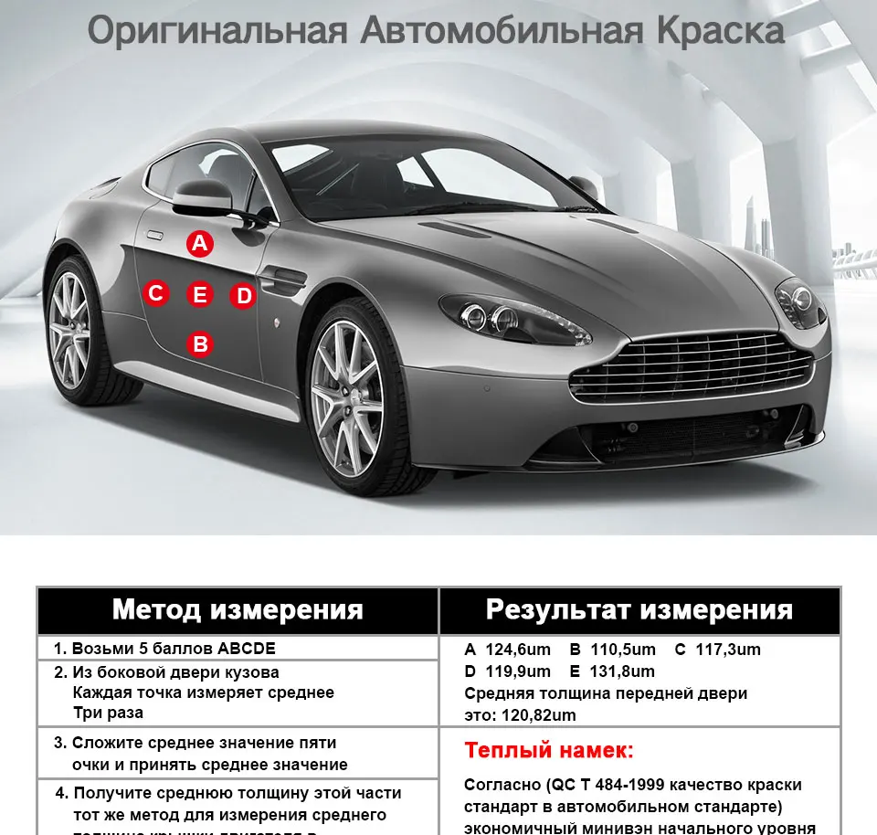 Толщиномер получил очень быстро - курьером, приехал через неделю после заказа! Откалибровал перед использованием за 5 сек. Использование очень простое и информативное. Толщиномер не имеет подсветки, но есть звуковой сигнал после точки замера. Сравнительно точный и удобный, размер корпуса немного больше других приборов данного назначения, что совсем не критично. Важно!!! Перед использованием нужно установить новую крону, иначе работать не будет! Я сначала поставил какие были дома, прибор вообще не включался, а только щелкало что-то внутри. Думал брак, но потом решил установить новую батарейку - всё включилось и заработало!!! Толщиномер полностью соответствует описанию, для проверки лкп на авто для обывателя подходит на 100%