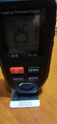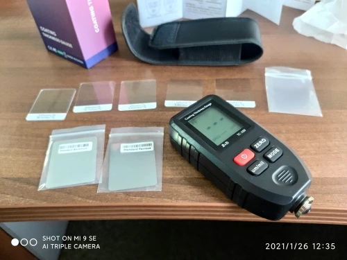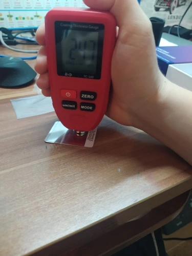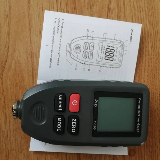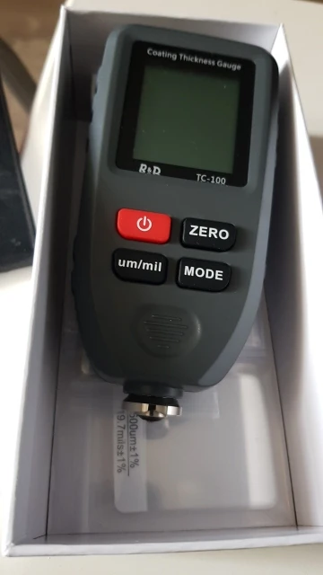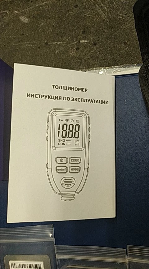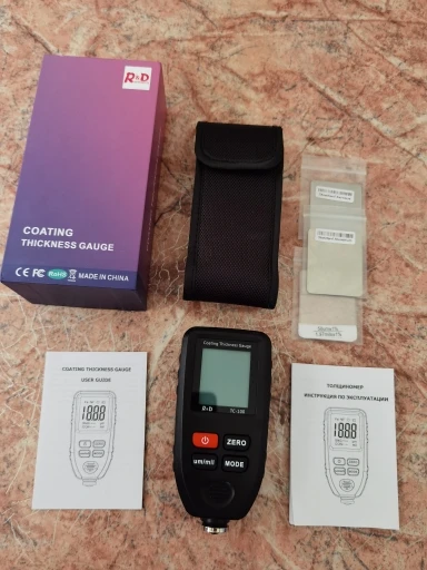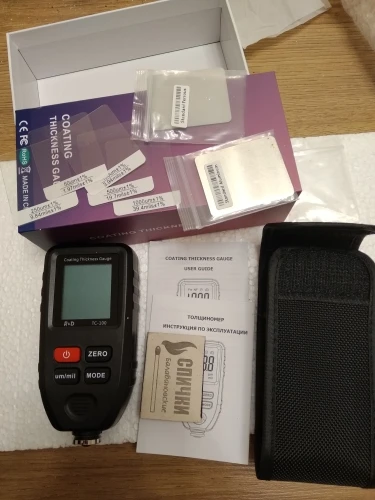Доставка быстрая. Отправили быстро. Товар соответствует описанию. Проверял все отлично работает. Малость большой, но а так норм. Колибровку прошол хорошо. Крашенные детали видит. Погрешность есть, но небольшая. За эти деньги, я думаю нормальный прибор. Показывает до 1500 микрон.