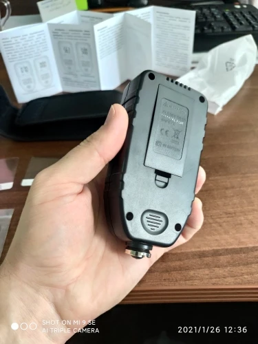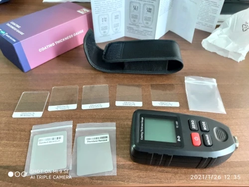 Довольно таки быстрая доставка с Китая до Кемеровской области. Коробка была упакована в пупырку, за транспортировку можно не бояться. Прибор идёт вместе с чехлом и калибровочными пластинами. С виду кажется громоздким, но это никак не влияет на качество измерения. Калибровать не стал, так как показания не сильно отличаются от эталонных пластин. Пробывал недолгое время работать им на морозе - 20, измеряет без проблем!