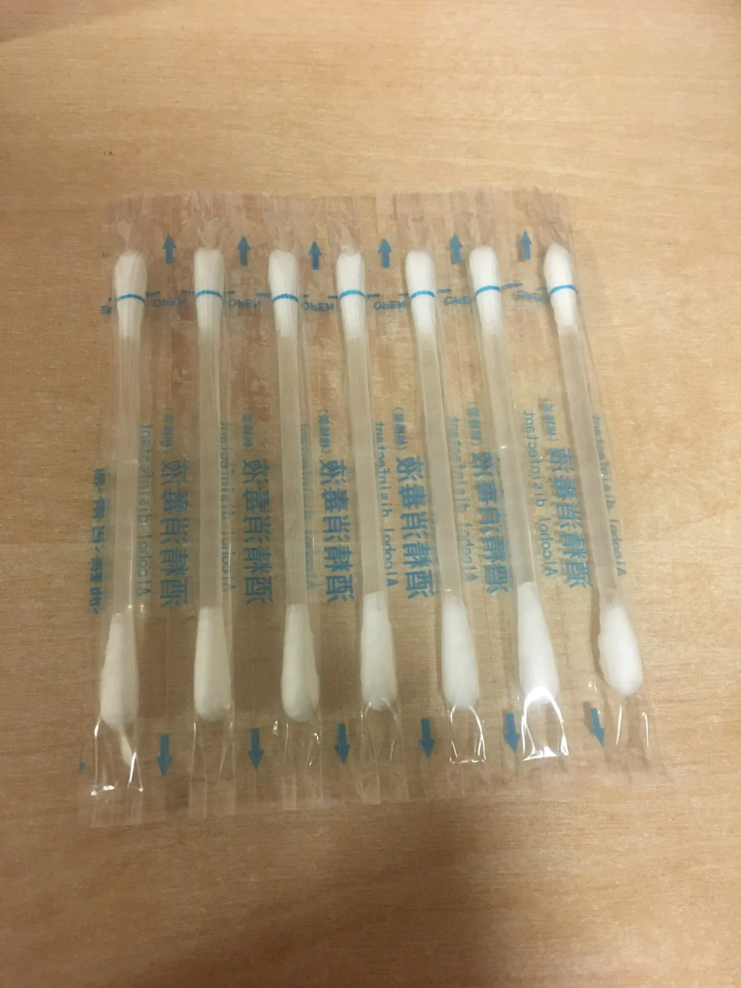Эта хлопковая палочка не содержит даже запаха алкоголя. Нет запаха этанола или изопропилового спирта.