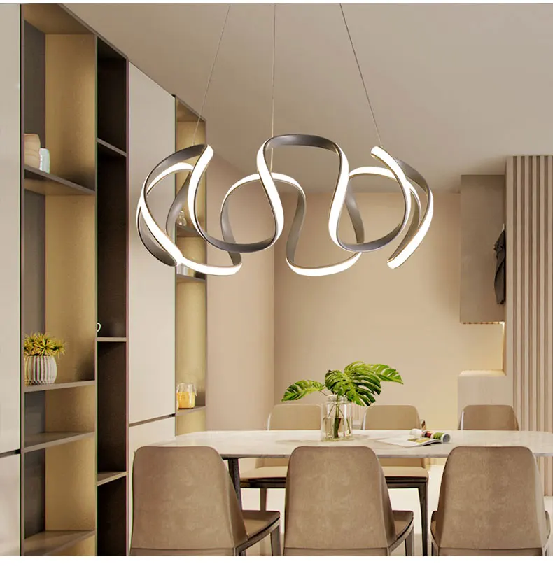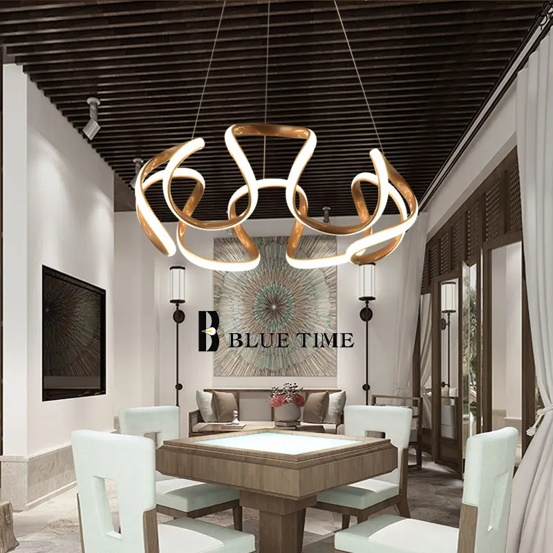 Люстра Светодиодная, для столовой, спальни, гостиной, кабинета, оправа кофейного цвета