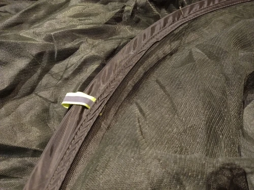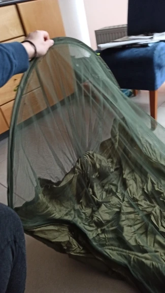 быстрая доставка 14 дней до Латвии. выглядит неплохо, швы достаточно ровные, имеется светоотражающие петельки. москитная сетка тонкая, думаю комары не проникнут вовнутрь. карабин выглядит надёжным. без запаха. на деле ещё не пробовала, придётся ждать весны.
