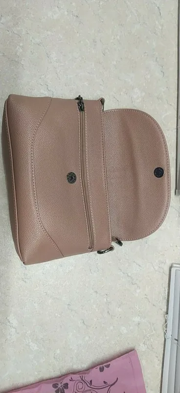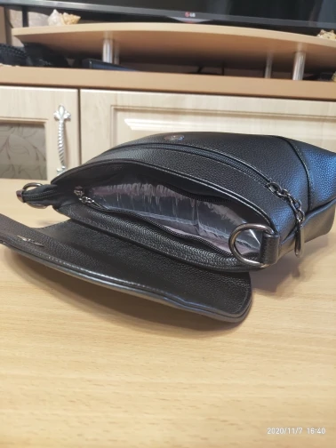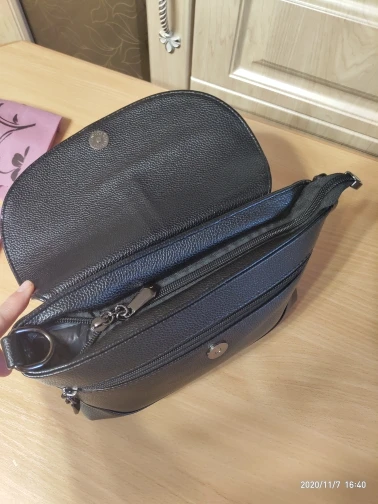 Не кожа! Воняет химией. Размер и форма отлично много внутренних карманов. Лямки не нравятся ношу на цепи от другой сумки. Указано что натуральная кожа... но нет, обман.