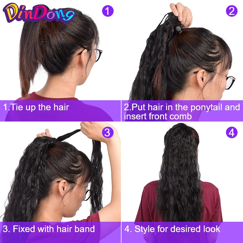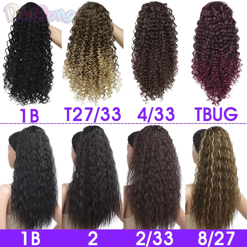 DinDong длинные кудрявые афро кудрявые удлинители конского хвоста Синтетический хвост с зажимом длинный хвост накладные волосы