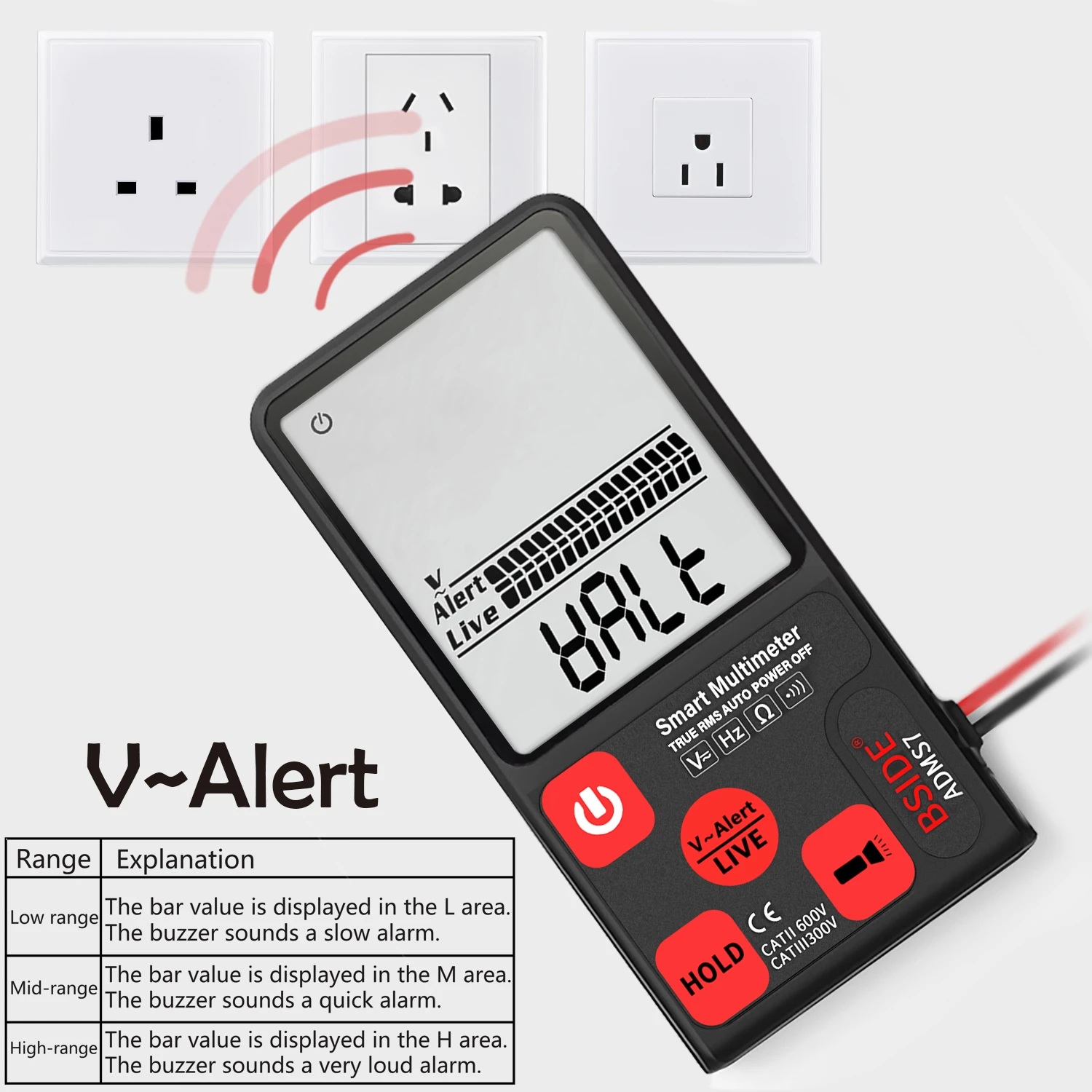 Цифровой мультиметр BSIDE ADMS7, большой ЖК-дисплей 3,5 дюйма, умный вольтметр, 3-строчный дисплей, TRMS 6000 отсчетов, DMM с аналоговой гистограммой
