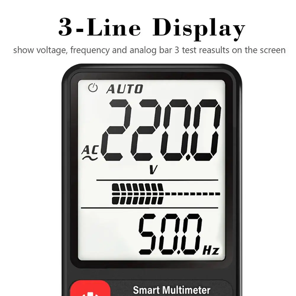 [Дизайн размера телефона]: супертонкий корпус и размер кармана делают его похожим на настоящий телефон. Идеально подходит для ежедневного самостоятельного использования, использования учителями или модное украшение. [Большой экран 3 линии дисплея]: большой экран тройной линии дисплея может показать 3 результаты тестирования на экране, такие как напряжение, частота и аналоговый бар. [Автоматическая идентификация]: Автоматическая идентификация позволяет не переключаться при тестировании напряжения переменного/постоянного тока, Гц, непрерывности и сопротивления. [Дизайн фонарика]: дизайн фонарика делает измерение более эффективным. Конструкция подвесного отверстия делает его более портативным. [Дизайн Unibody]: дизайн Unibody, нет необходимости подключать и выключать зонды, которые не только могут сэкономить время обучения и тестирования, но и предотвратить неправильное включение портов, который может сжечь мультиметр.