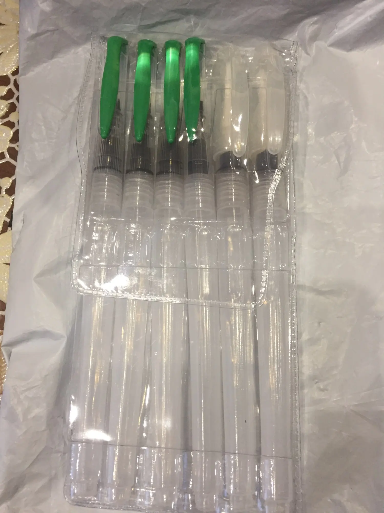 Очень быстрая доставка - заказ сделала 18-го октября, а 29-го посылка уже ожидала на почте! Ничего не помялось и не погнулось. Хорошие кисти. Воду не наливала пока, но закручиваются хорошо, воздух не пропускают. Заказывала 1 и 3. Спасибо! Очень довольна) С продавцом общаться не пришлось.