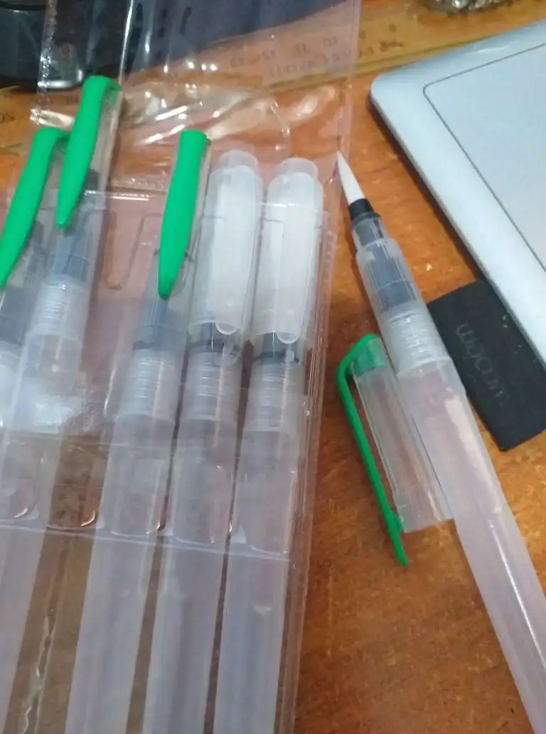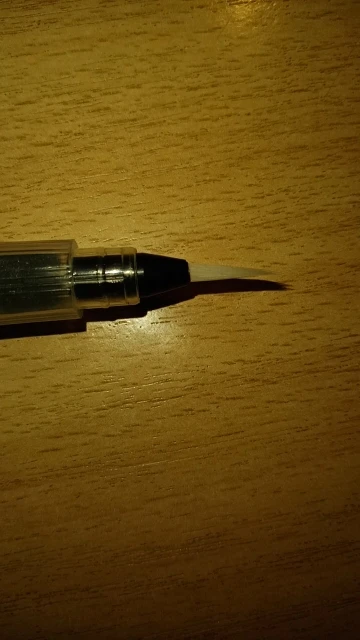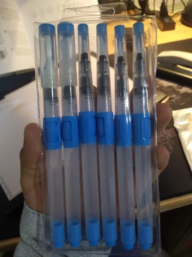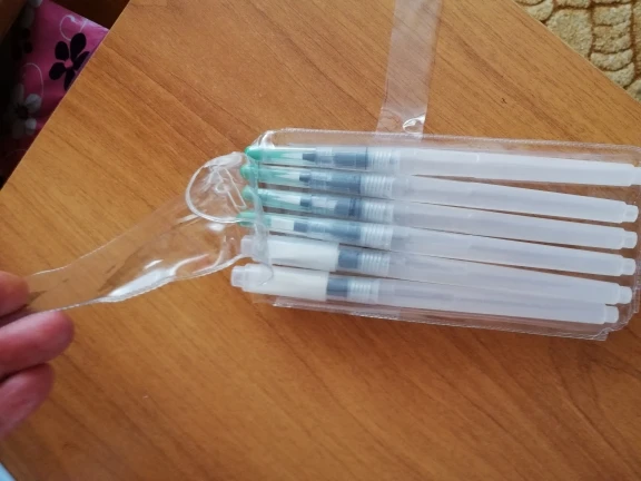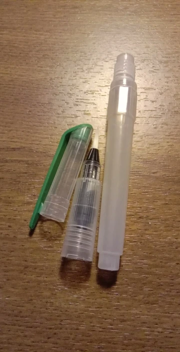 Кисть очень хорошая, уже 2 недели рисую и всё пока хорошо, пластик не расходится, не протекает. Шла посылка 2 недели. Сама же кисть довольно мягкая.