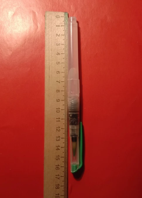Кисть хорошая, достаточно удобная. Наполняла резервуар водой два раза для работы формата А3. Всем довольна!