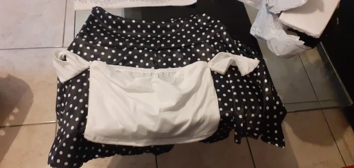 Комплект был доставлен в Польшу за 3 недели. Товар соответствует картинке и описанию, единственное что шов немного неровный на юбке,но всё равно выглядит супер. Осталась довольна:)