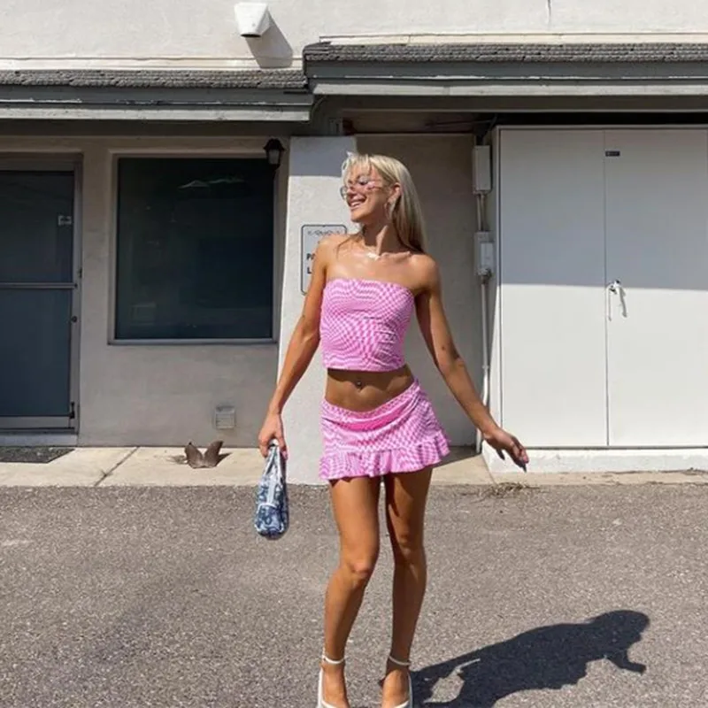 Женский богемный комплект из двух предметов, комплект из топа без рукавов и короткой юбки с оборками, комплект из двух предметов, лето 2022