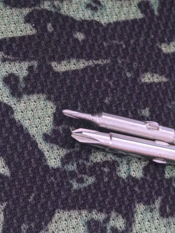 Заказал набор, у дяди такой же, думал прийдёт аналогичный. Но этот: металл отвёртки не оранжевый, а темно-брозновый, биты длиннее и тяжелее. Материал футляра с битам плотнее и менее гибкий. Также при полной фиксации биты в отвёртке, есть зазор между рукояткой и колпачком-фиксатором.
