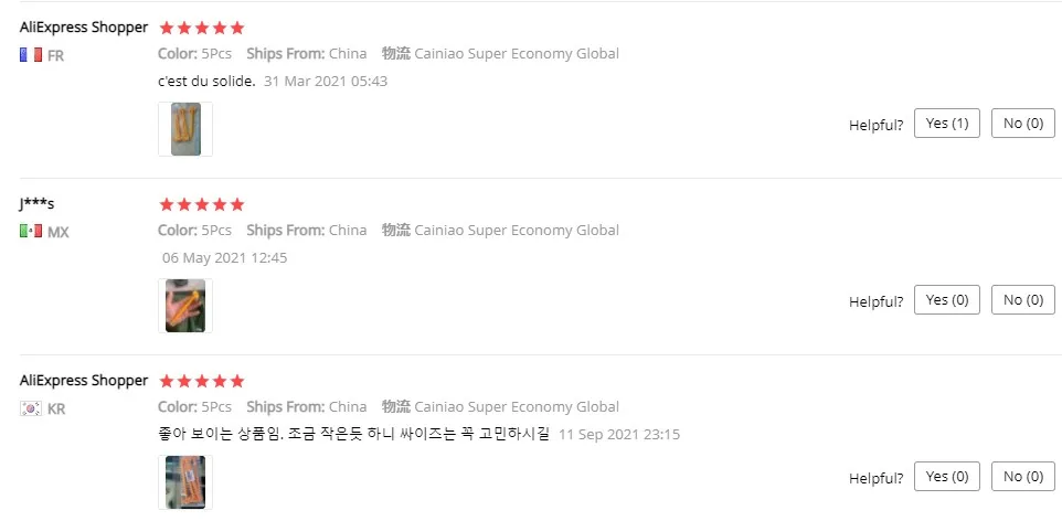Страна: FR Color: 5Pcs Ships From: China Доставка: Cainiao Super Economy Global 24.04.2021