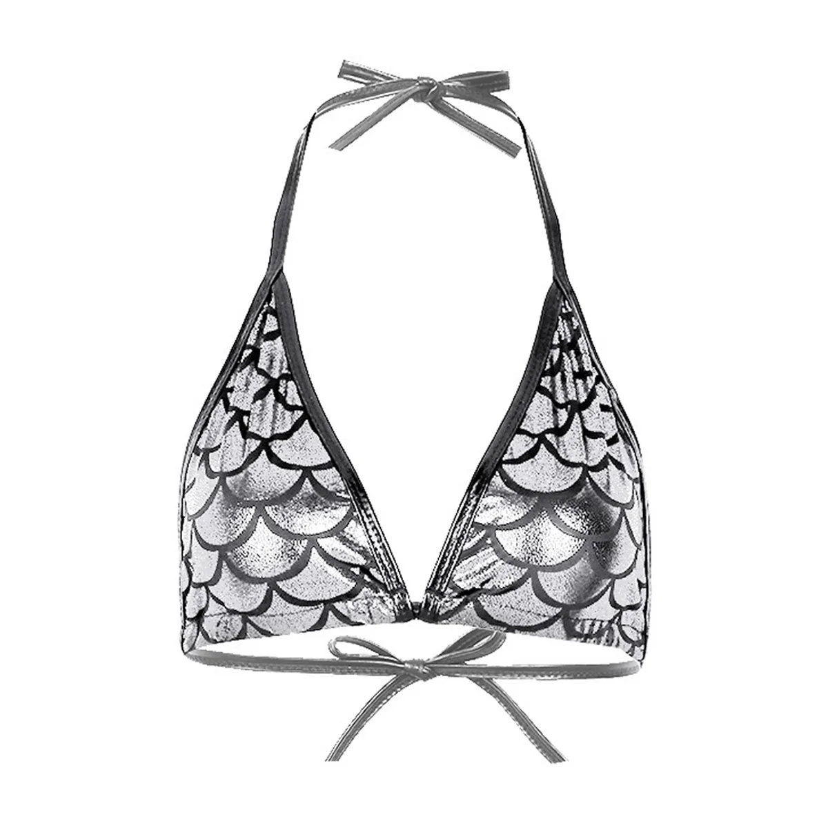 Женский купальник ralett, Блестящий металлический топ с принтом в виде русалки и рыбьей чешуи, с завязками на шее и спине, бикини, 2019