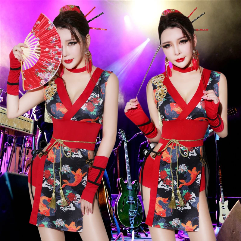 Красивое модное платье для ночного клуба женские косплей костюмы Красный китайское платье Чонсам бар DJ костюм ведущих танцор сценический костюм BL1909