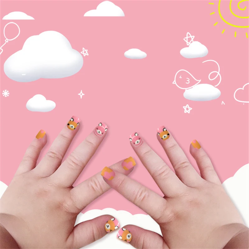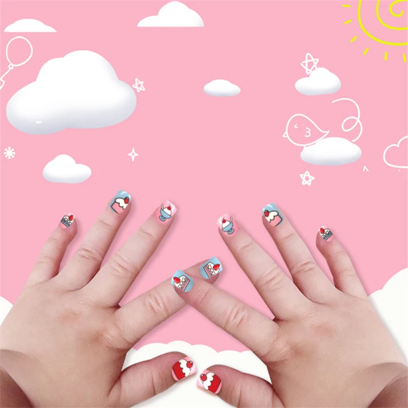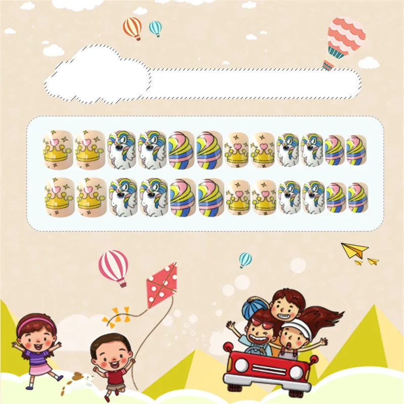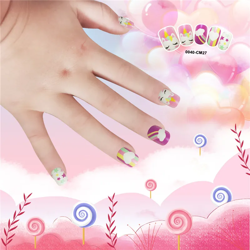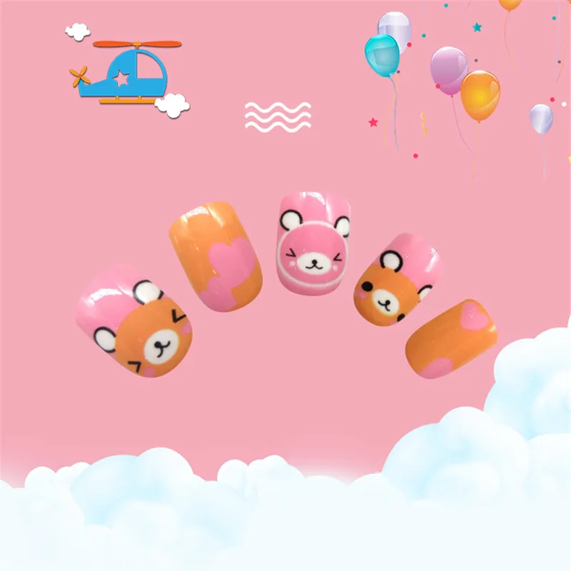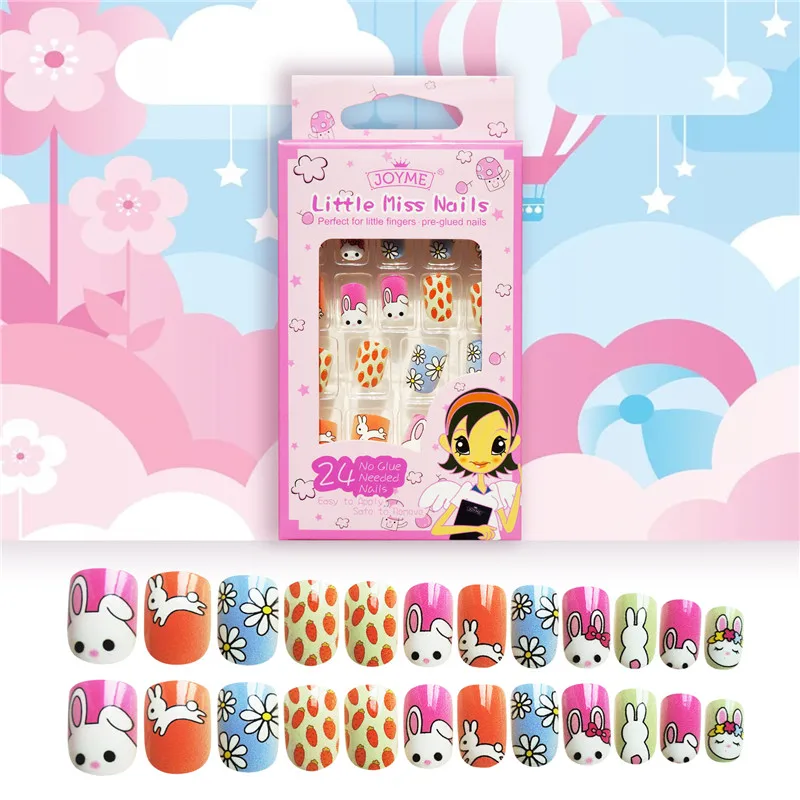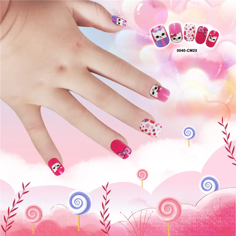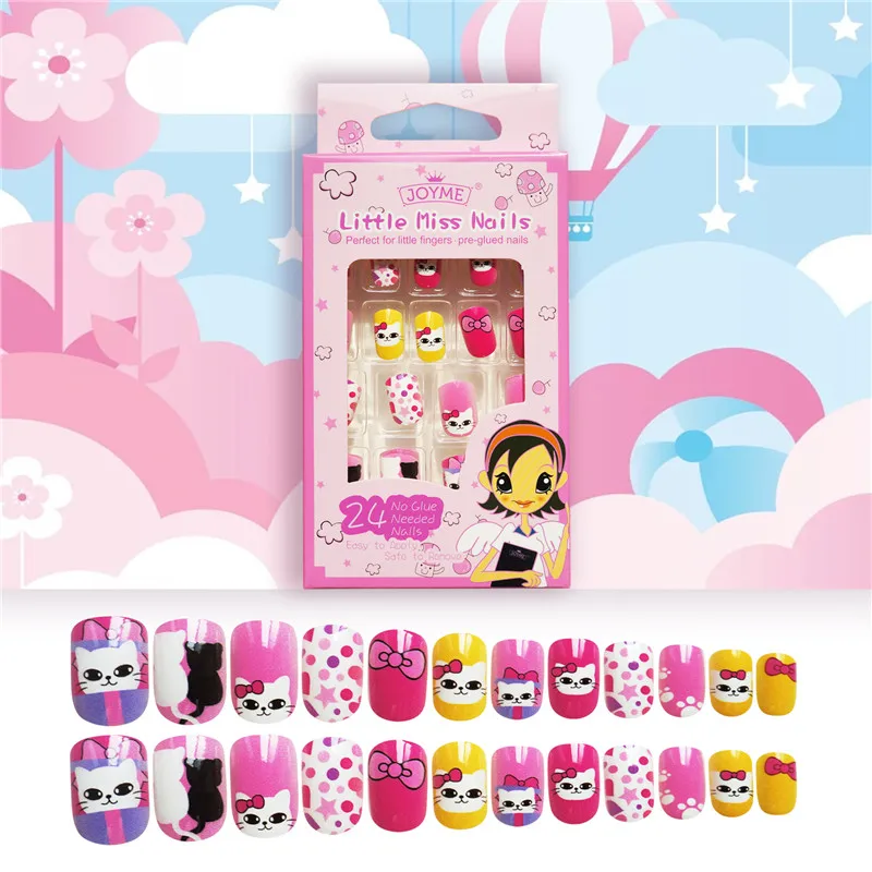 Накладные ногти для детей, 24 шт., яркие накладные ногти, мультяшное полное покрытие, детские розовые накладные ногти для маленьких девочек, 14 дюймов, инструмент для маникюра