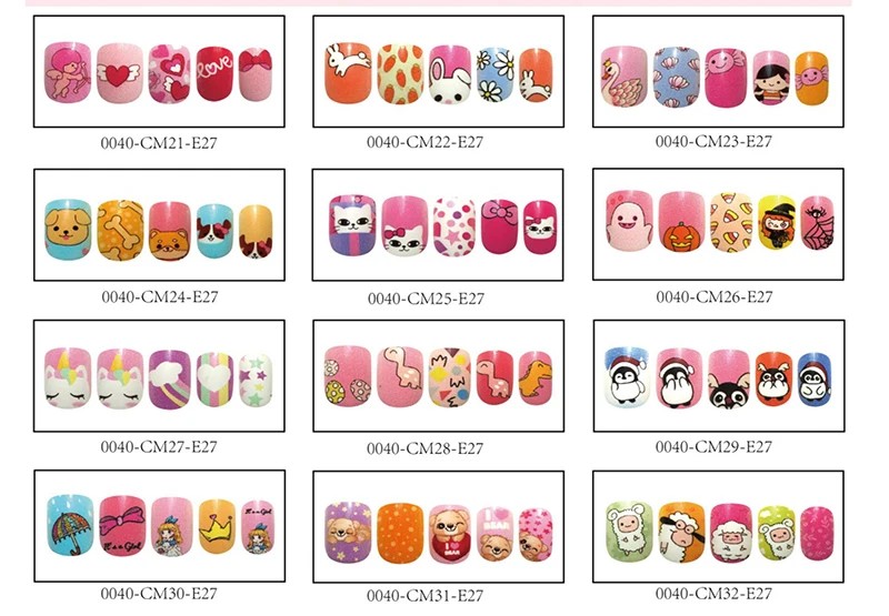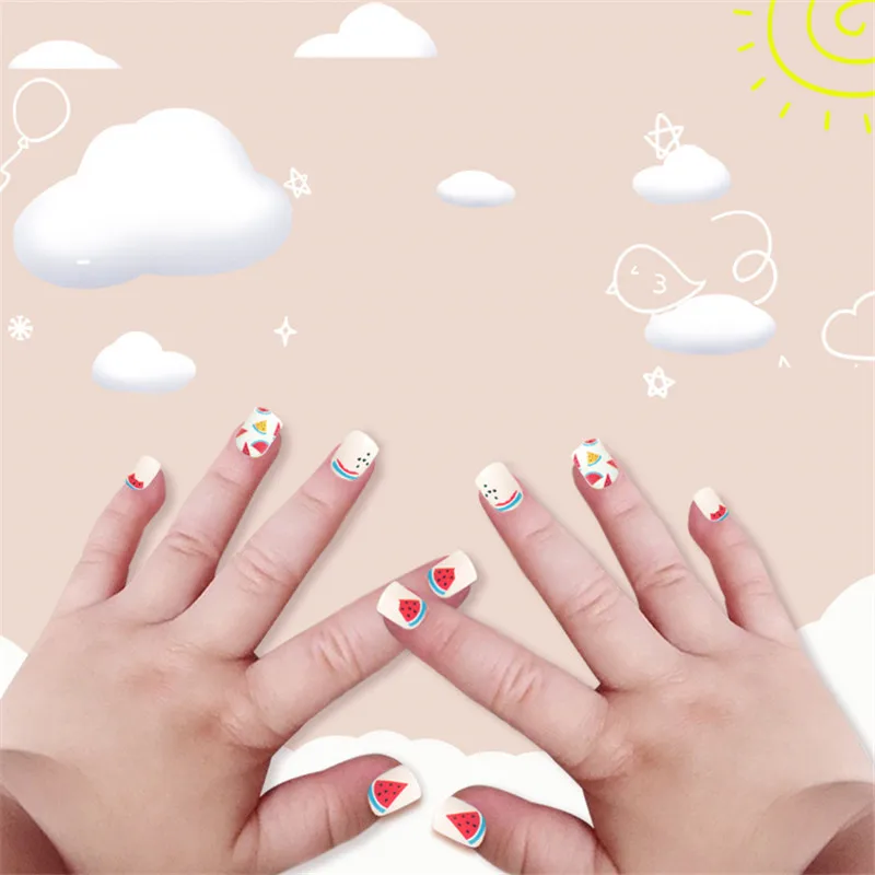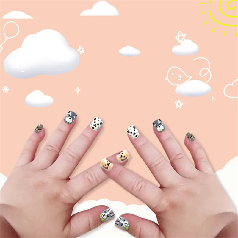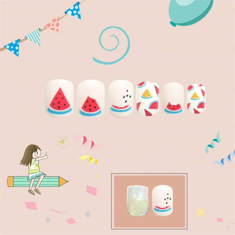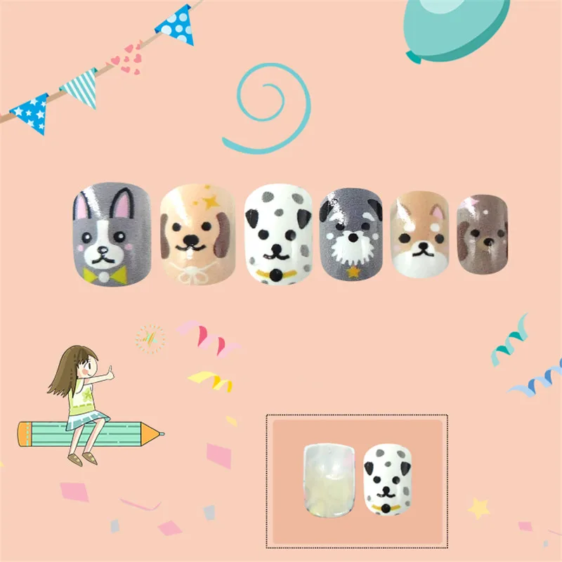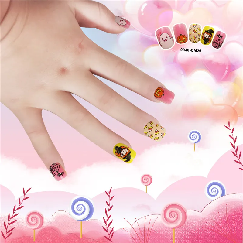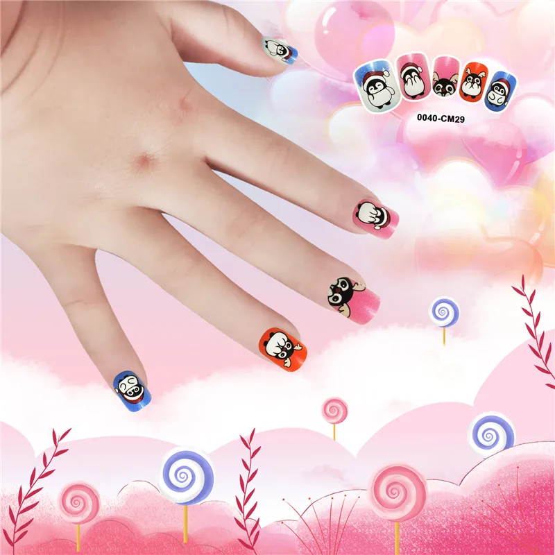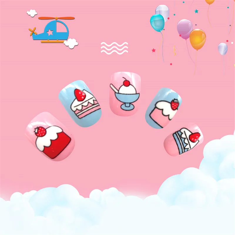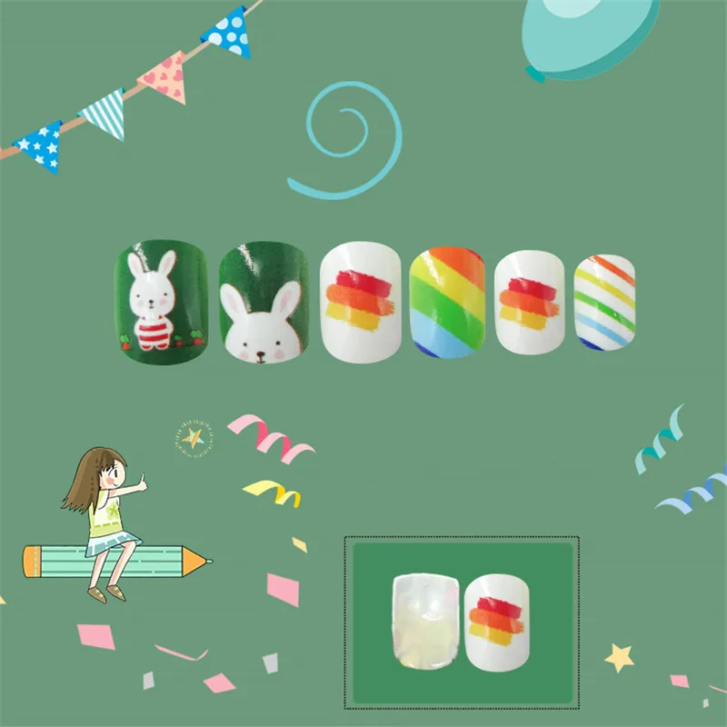 Накладные ногти для детей, 24 шт., яркие накладные ногти, мультяшное полное покрытие, детские розовые накладные ногти для маленьких девочек, 14 дюймов, инструмент для маникюра