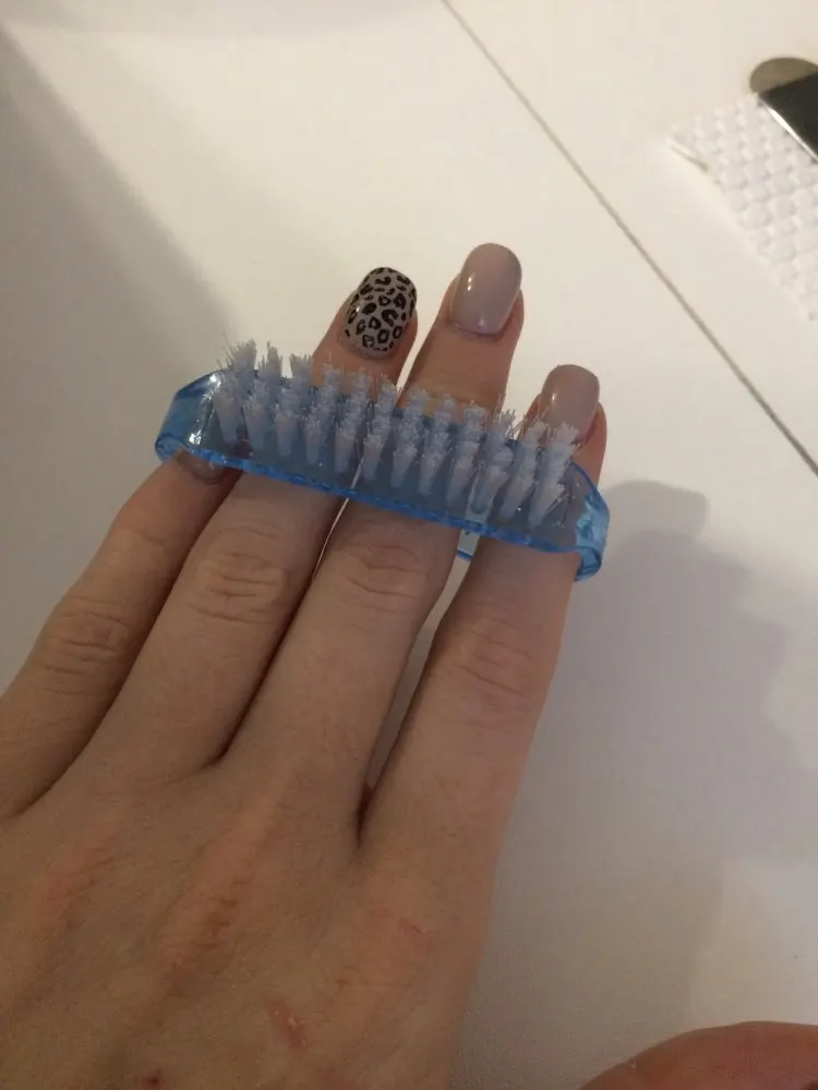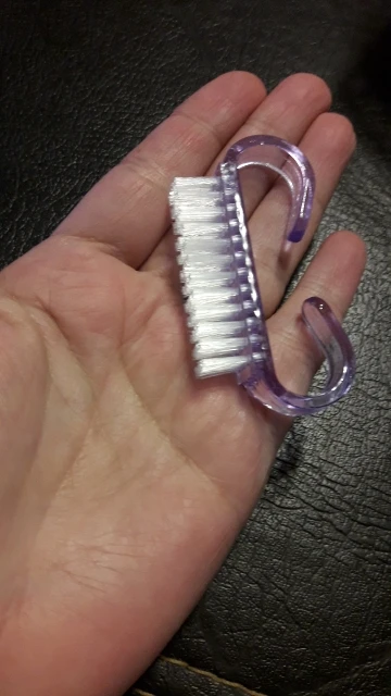 Немного маленький, но хорошо сидит на руке во время работы, я могу оставить его на пальце, не беспокоясь сделать маникюр и одновременно чистить ногти.