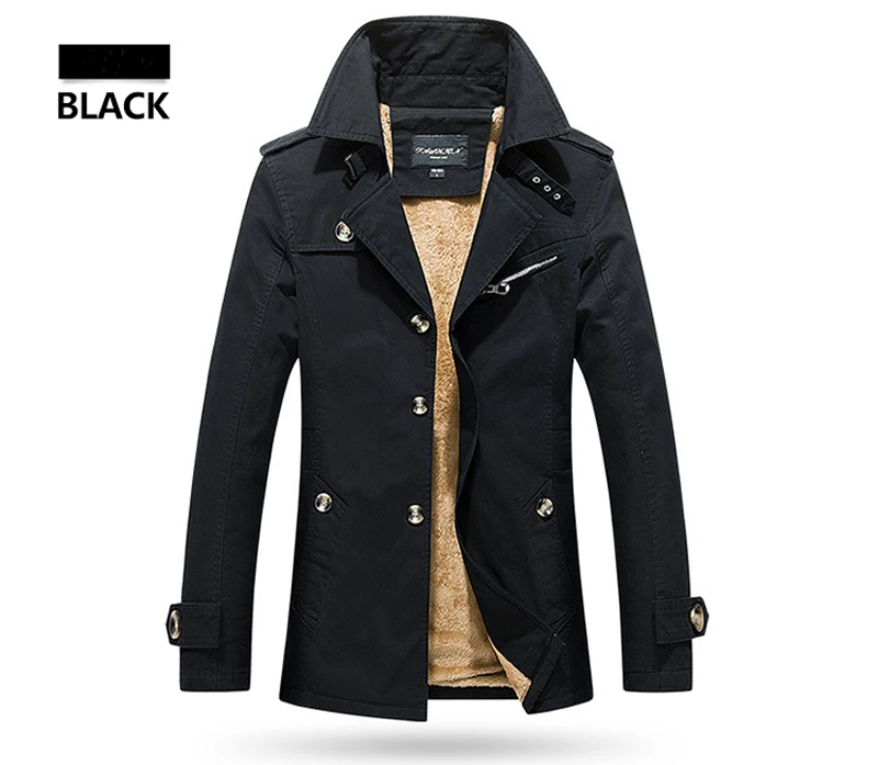 Тренчкот мужской зимний, Классическая Повседневная теплая ветровка, плотная бархатная длинная куртка, большой размер, стандартная верхняя одежда, деловые пальто