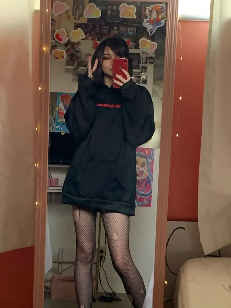 Худи дьяволенок женское свободное с капюшоном в стиле харадзюку