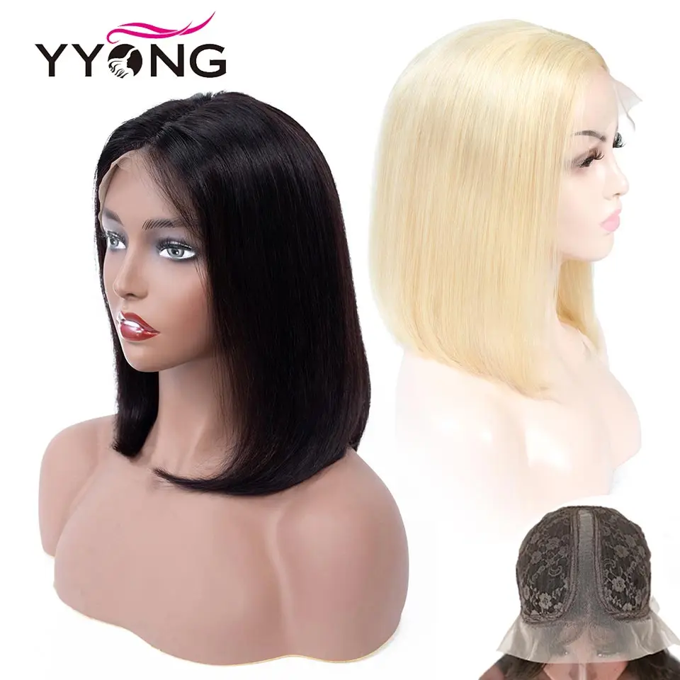 YYong T-Part парик из натуральных человеческих волос естественного цветасветлые 613 человеческие волосы прямые волосы боб парик на сетке с естественной линией волос