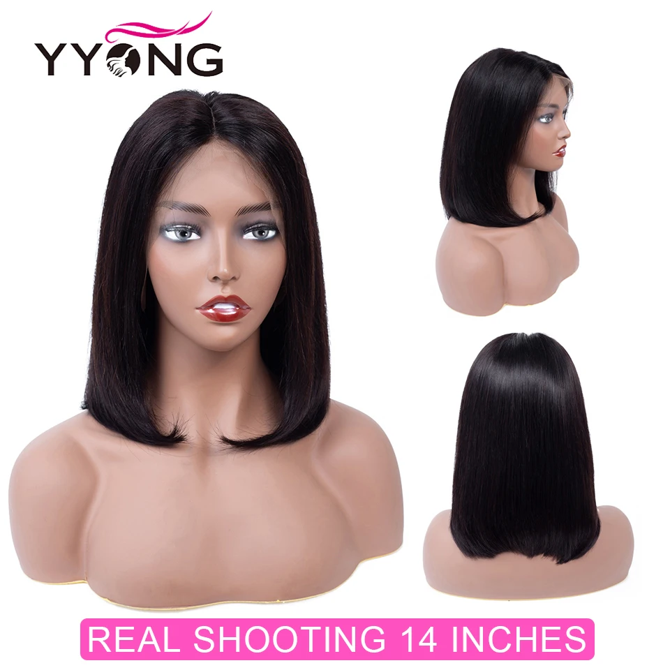 Yyong 13x4 Короткие Синтетические волосы на кружеве человеческих волос парики блондинка 613 пряди человеческих волос для Синтетические волосы на кружеве al парик перуанские волосы парик для черных женщиN