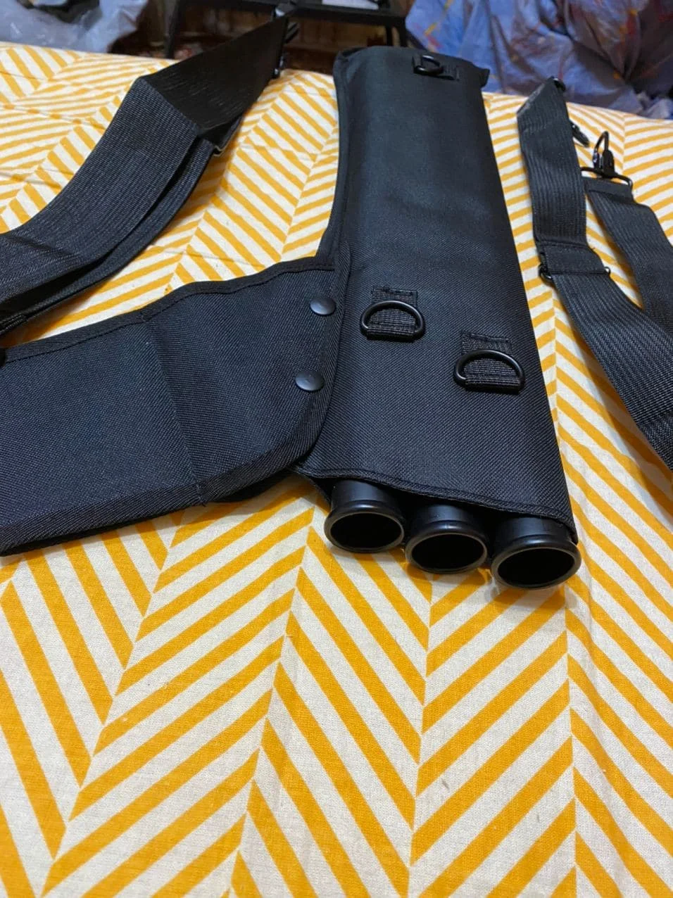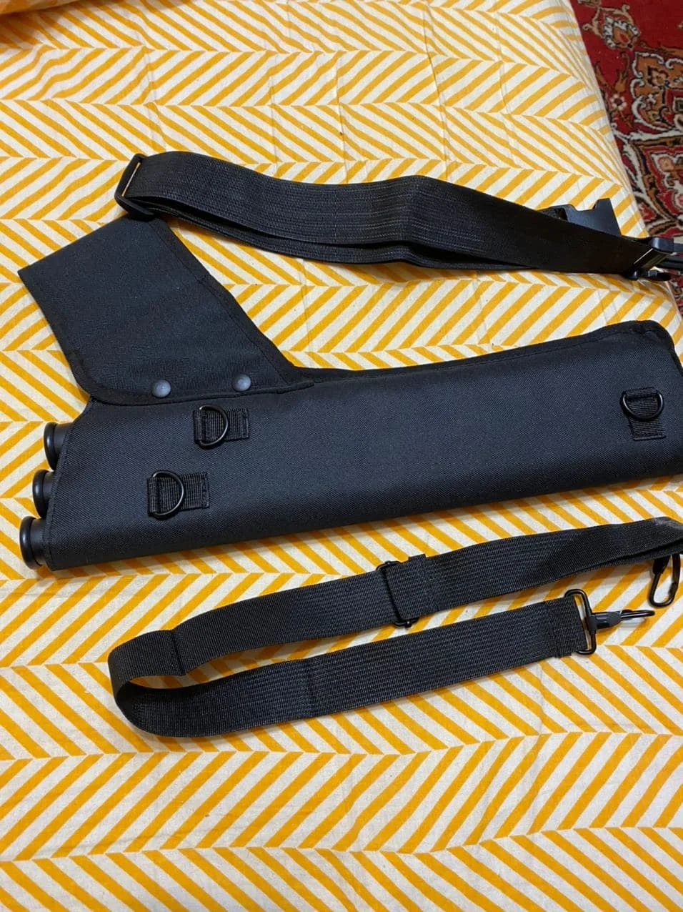 Отлично сшито, колчан удобный, поясной ремень отличный, наплечный коротковат для меня в тубусы больше 3 стрел не вкладывал.