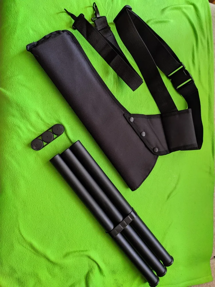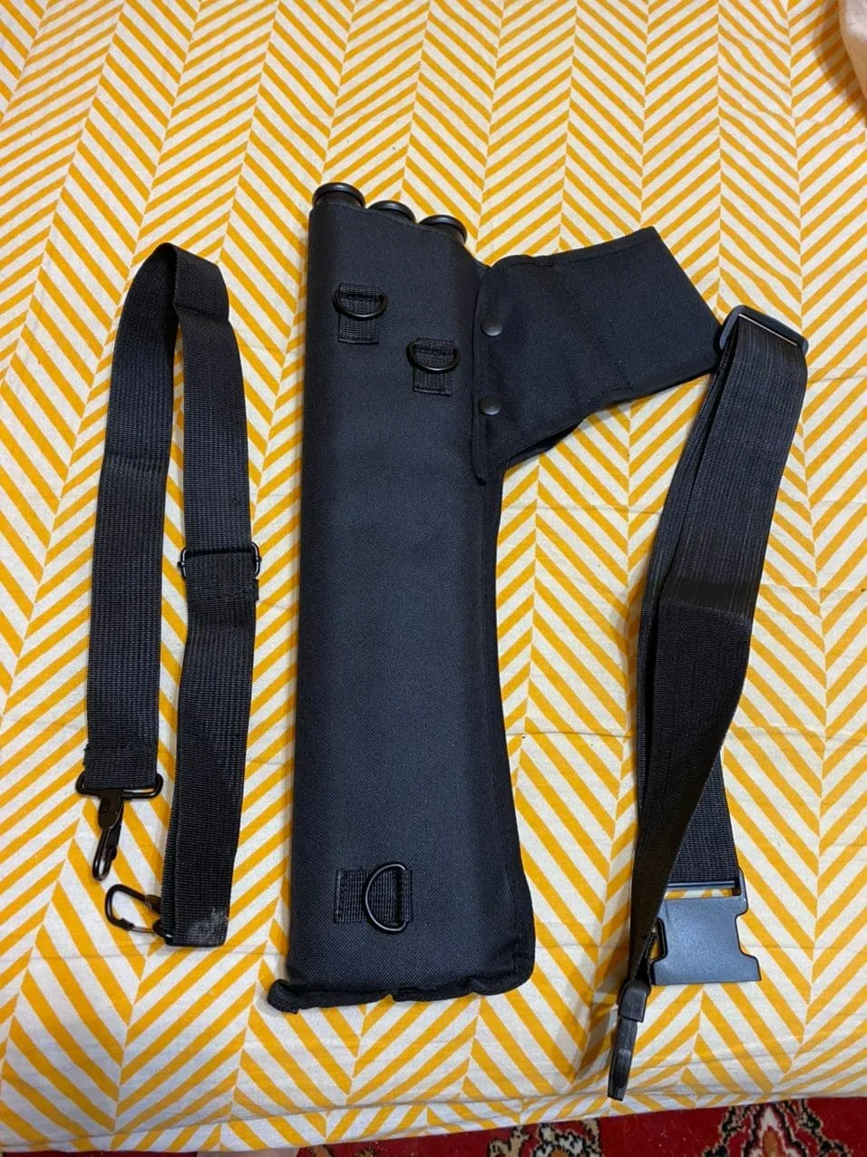 Возможность крепить как на пояс, так и на плечо. Выглядит красиво и вмешает 5-6 стрел в одну лунку. Итого 15-18 стрел моих помещается.