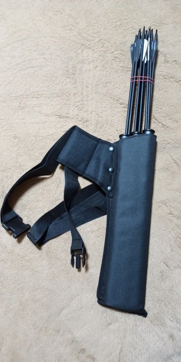 отличный колчан для ношения на поясе, за спиной совсем не удобно, рукой не достать, но может это всё субъективно. качество отличное, два варианта крепления, кому как удобно будет. товар рекомендую к покупке. Долго шло в подмосковье-полтора месяца.