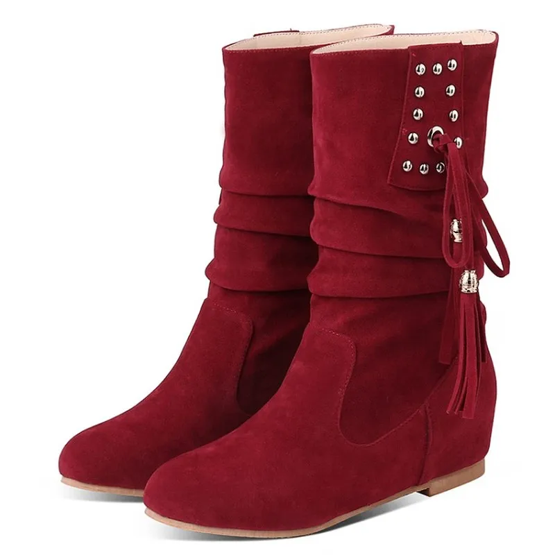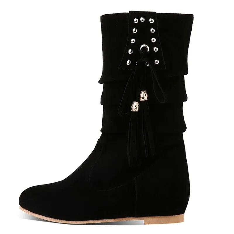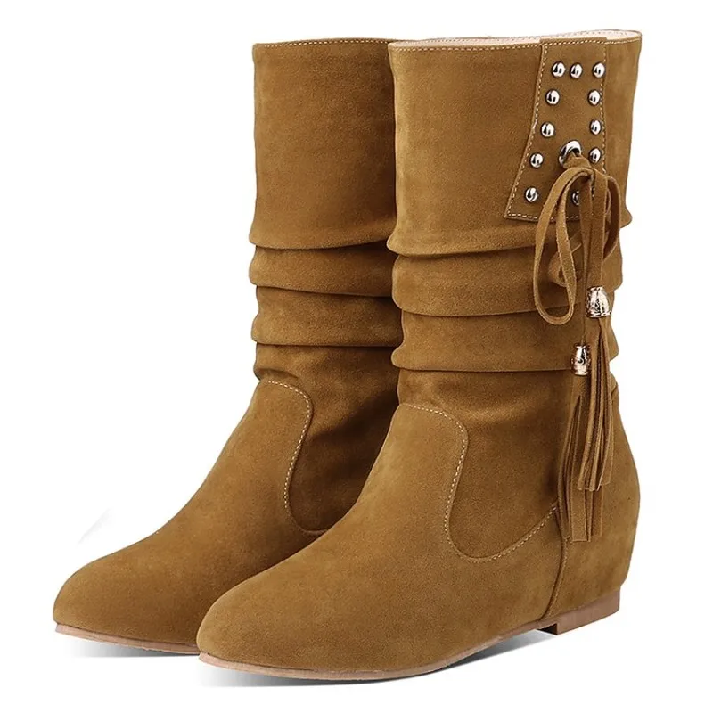 Женские ботинки на танкетке с бахромой, до середины икры, размеры 34-43