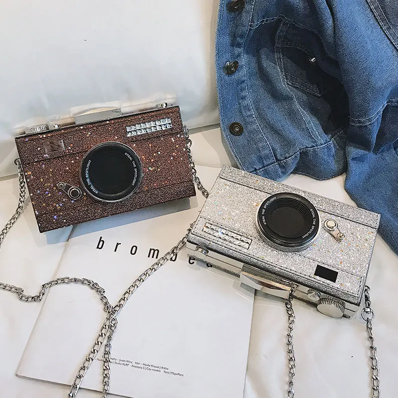 Роскошные сумки через плечо в форме камеры с блестками, женская мод...