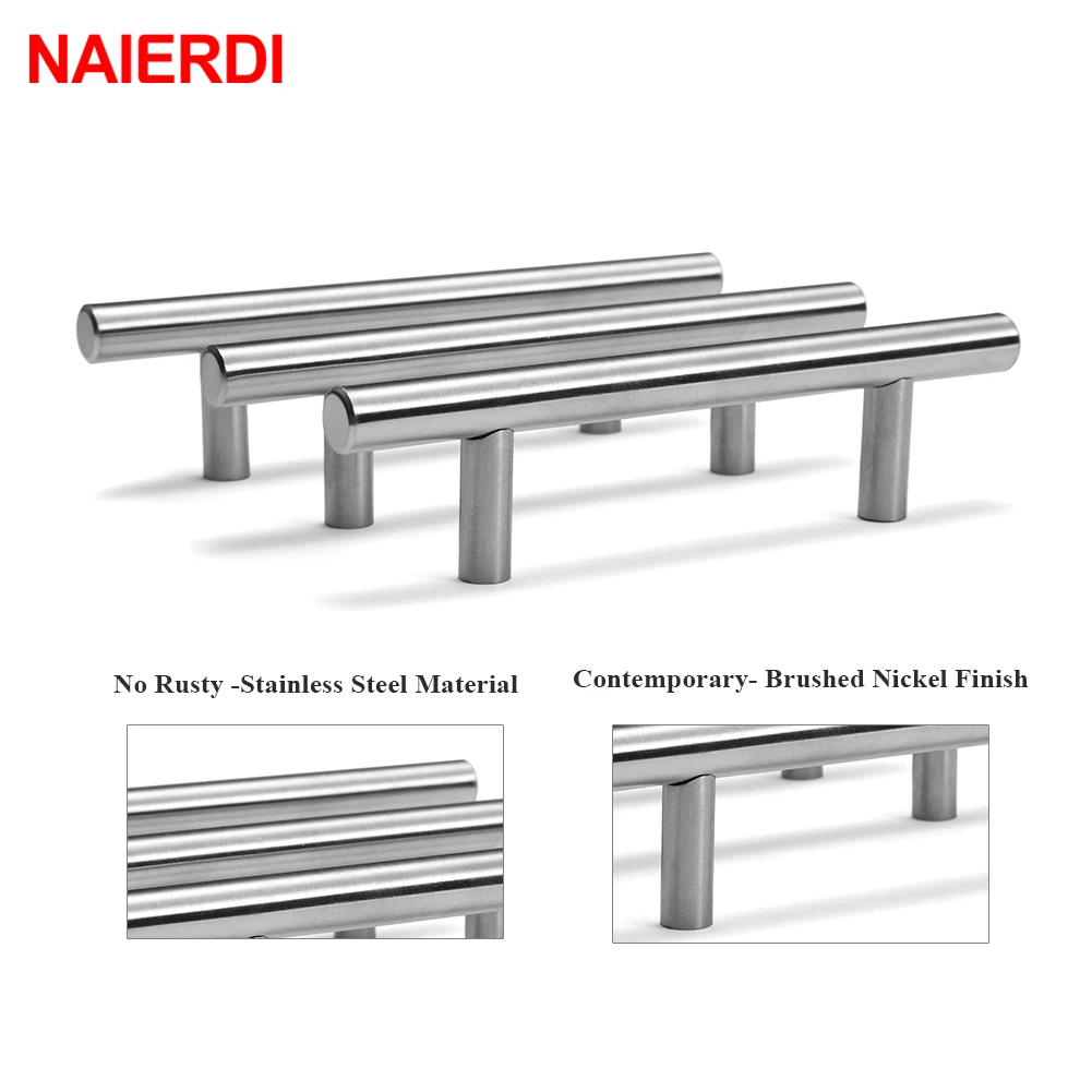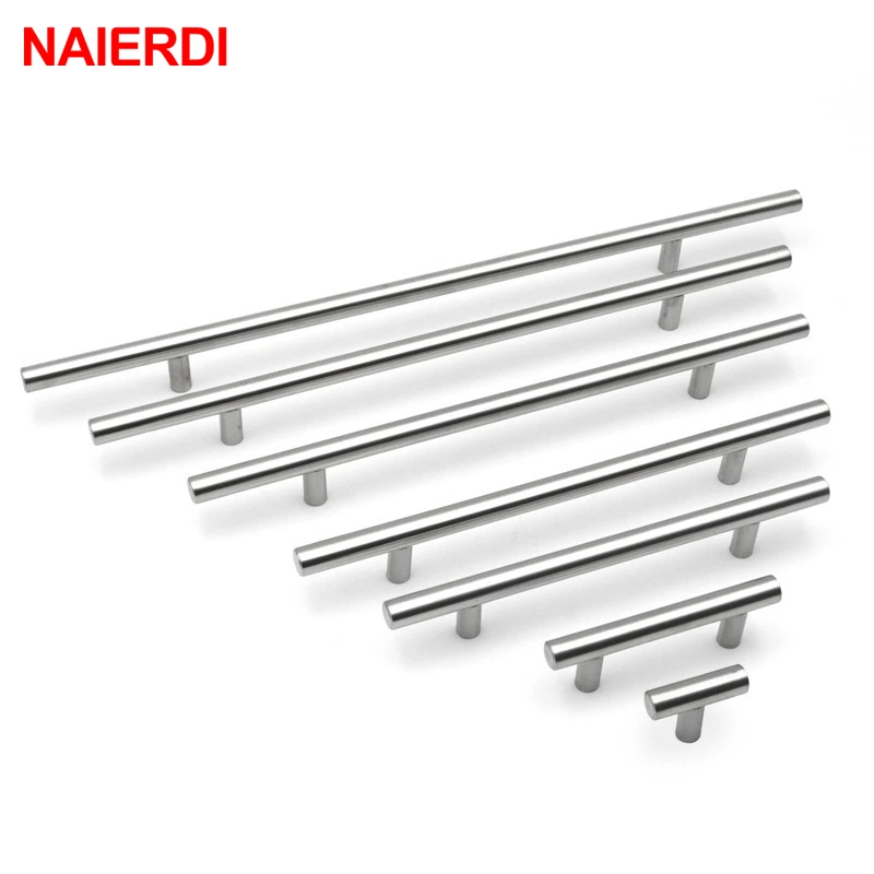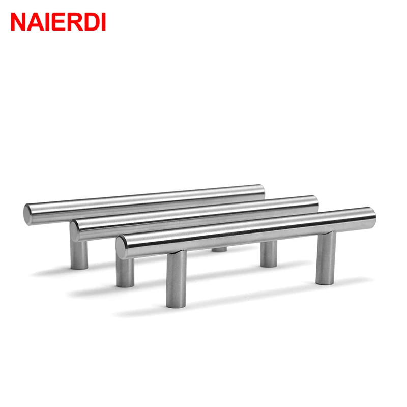 Ручки для шкафа NAIERDI из нержавеющей стали, 2-24 дюйма, диаметр 10 мм, Т-образная прямая ручка для кухонной двери, мебельная фурнитура