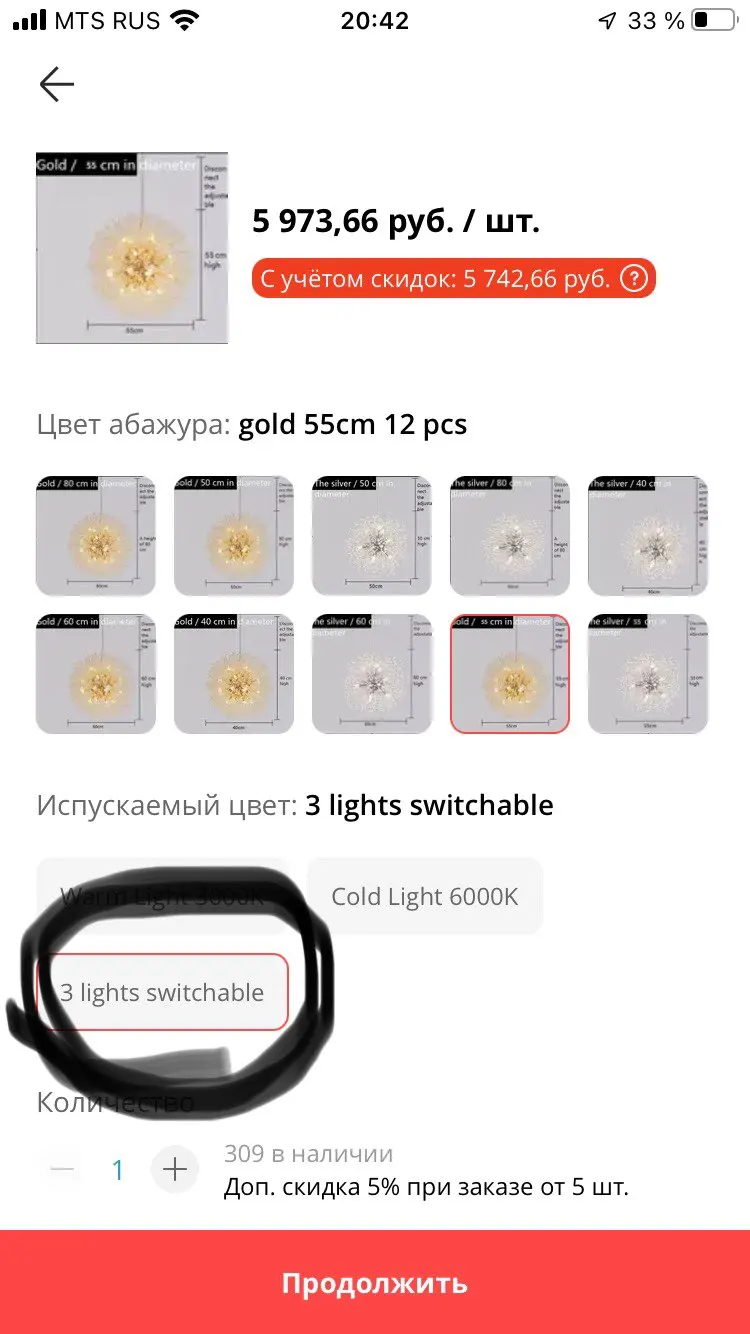 Страна: RU Lampshade Color: gold 55cm 12 pcs Emitting Color: 3 lights switchable Доставка: Cainiao Heavy Parcel Line 04.07.2022