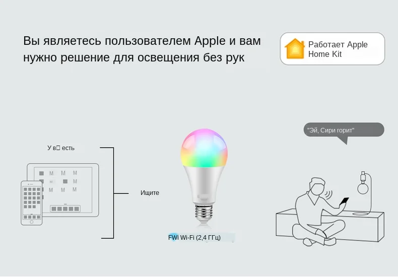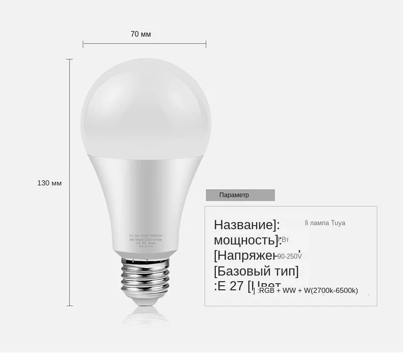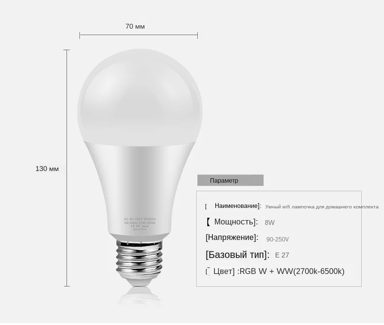 Лампа приложения HOMEKIT: Цвет светильника: полноцветный (16 миллионов RGB) Тип цоколя: E27 Мощность: 8 Вт Напряжение: AC85-265V Особенности: A) не требуется концентратор для настройки: немедленно Начните управлять своей лампой с помощью быстрой и легкой настройки с помощью Wi-Fi на совместимом устройстве Apple iOS с приложением Apple Home. Б) Голосовое управление с Siri: Управляйте светом с помощью голосовой интеграции через Siri попросите Siri затемнить свет, установить сцену, включить или выключить и многое другое. C) работает с Apple HomeKit для поддержки более 16 миллионов доступных цветов и регулируемой температуры белого цвета от 2700K до 6500K. Не требуется концентратор для установки. D) он работает с Apple HomeKit, поэтому вы можете легко управлять подключенными лампами с помощью Siri на вашем iPhone, iPad, iPod touch или Apple Watch. Не требуется устанавливать другие приложения. Лампа TUYA или Smart Life APP: Цвет светильника: полноцветный (16 миллионов RGB) Основание: E27 Мощность: 9 Вт Напряжение: AC85-265V