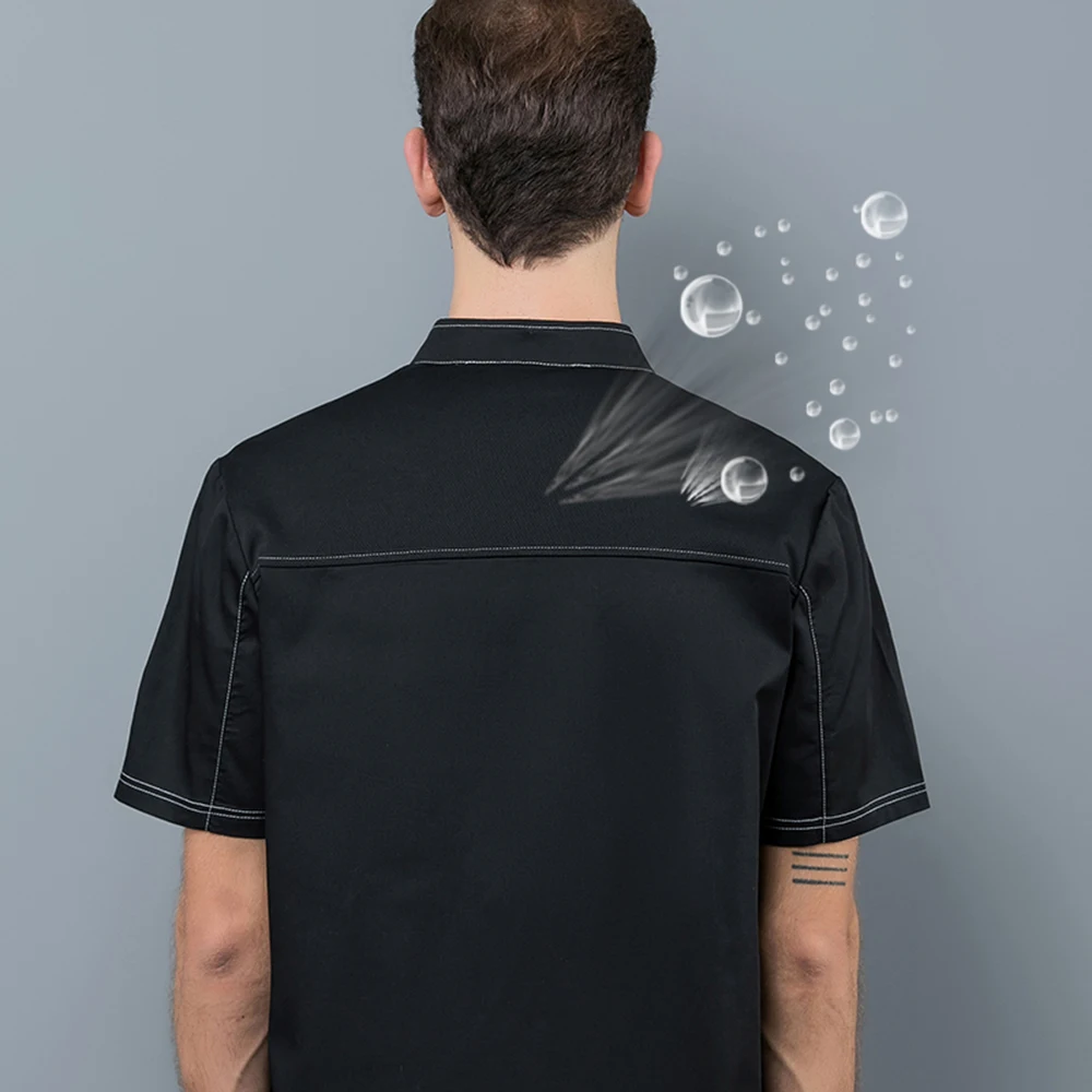 Рабочая одежда унисекс с коротким рукавом, униформа для ресторана, кухни, куртка шеф-повара, фартук, черная рубашка, оптовая продажа M-4XL