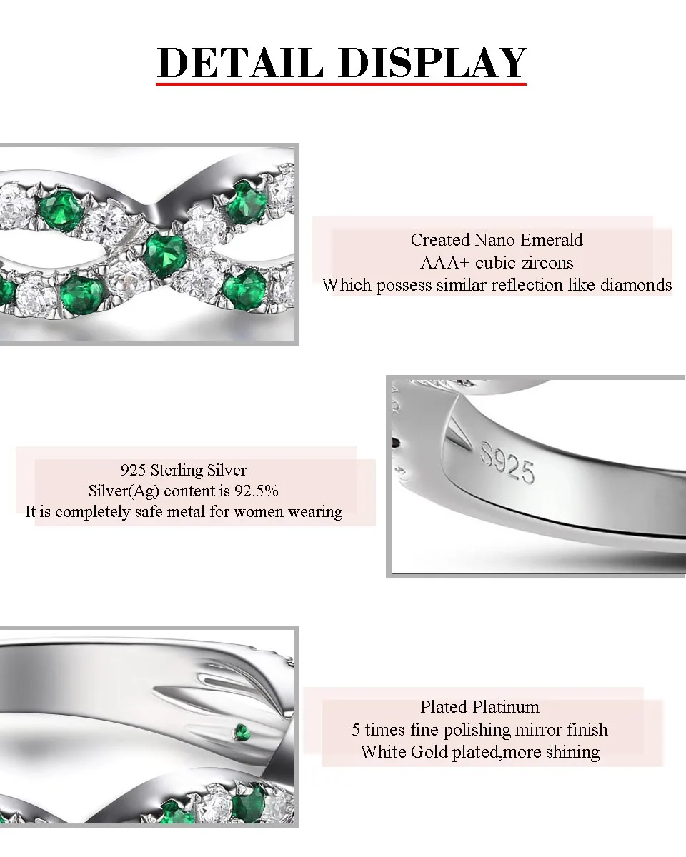 Характеристики изделия: бренд: Hutang Fine или fashion: Fine Metal: Solid Стерлинговое Серебро 925 пробы маркировка: S925 покрытие: родиевое покрытие драгоценный камень: наноизумруд/кубический цирконий драгоценные Камни класс: AAA + драгоценные камни цвет: зеленый/белый общий вес камня: 2,59 карат Повод: Свадьба/помолвка/вечерние/юбилей Упаковка: стильная подарочная коробка