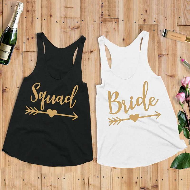 Жилет для отряда невесты со стрелками в форме сердца, топы, стильный Повседневный Топ Racerback для девичвечерние, подарок на вечеринку, летняя рубашка без рукавов для свадьбы