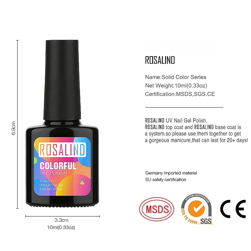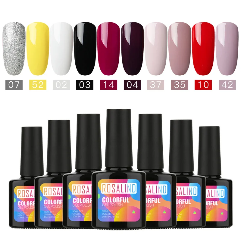 10 шт.лот ROSALIND 10 мл набор гель-лаков для ногтей в пластиковой бутылке свежий цвет отмачиваемый УФ-лак для ногтей Набор для маникюра
