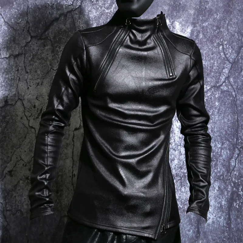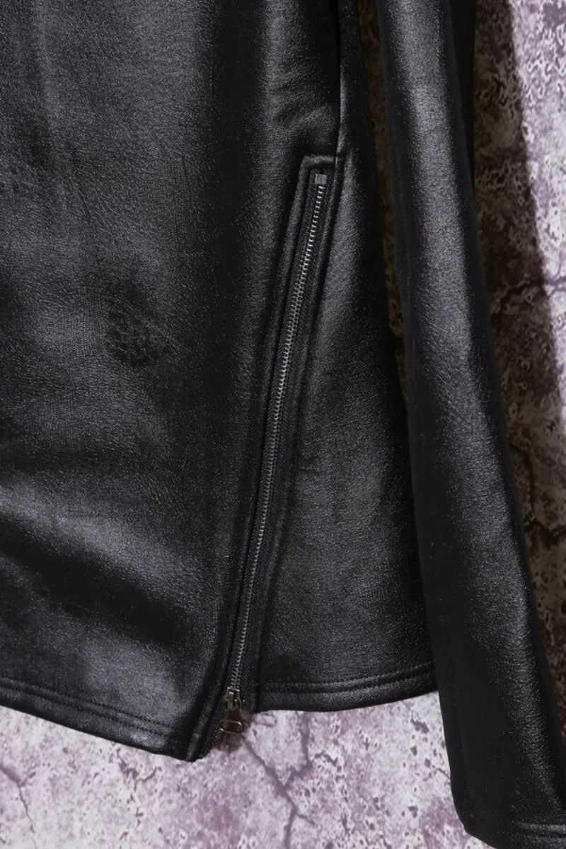 Осенне-зимний мужской меховой жакет с вортником стойкой Флисовая Подкладка Куртка Пуловер Готический Slim Fit панк-куртка черная мотоциклетная куртка из искусственной кожи