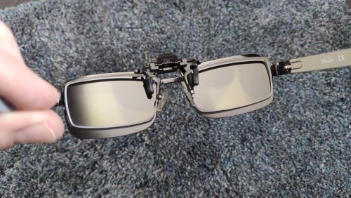 Прикольная штука, поляризация правда есть (можно проверить, если покрутить перед экраном электроники), на очки крепятся уверенно, посмотрим как будет летом от солнца защищать