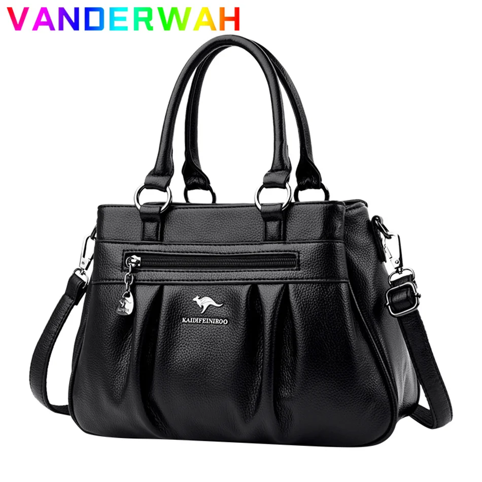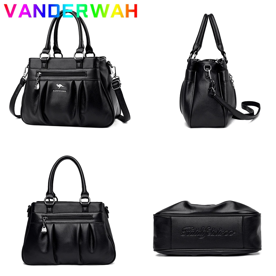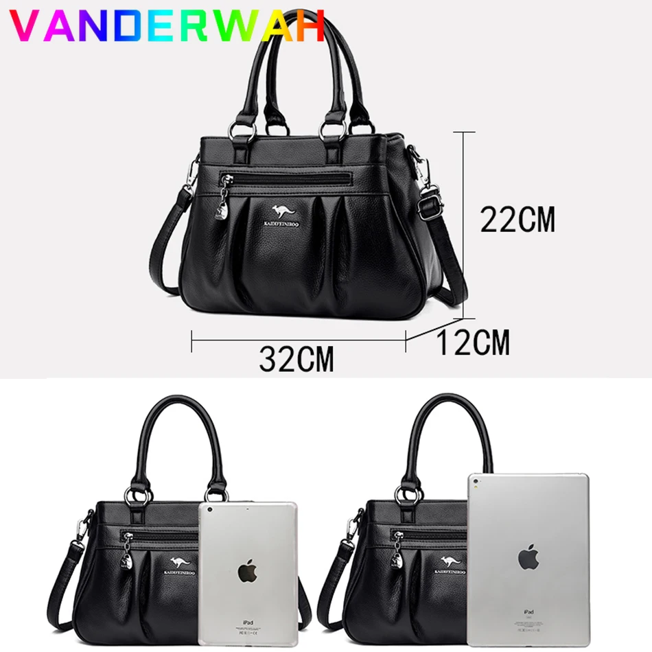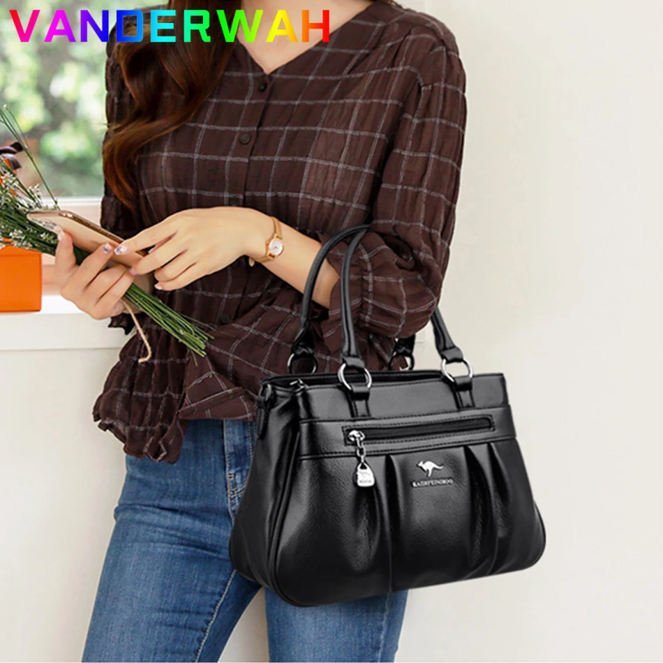 Сумка женская кожаная с ручками сверху, саквояж кросс-боди на плечо, Роскошный дизайнерский 3-слойный клатч