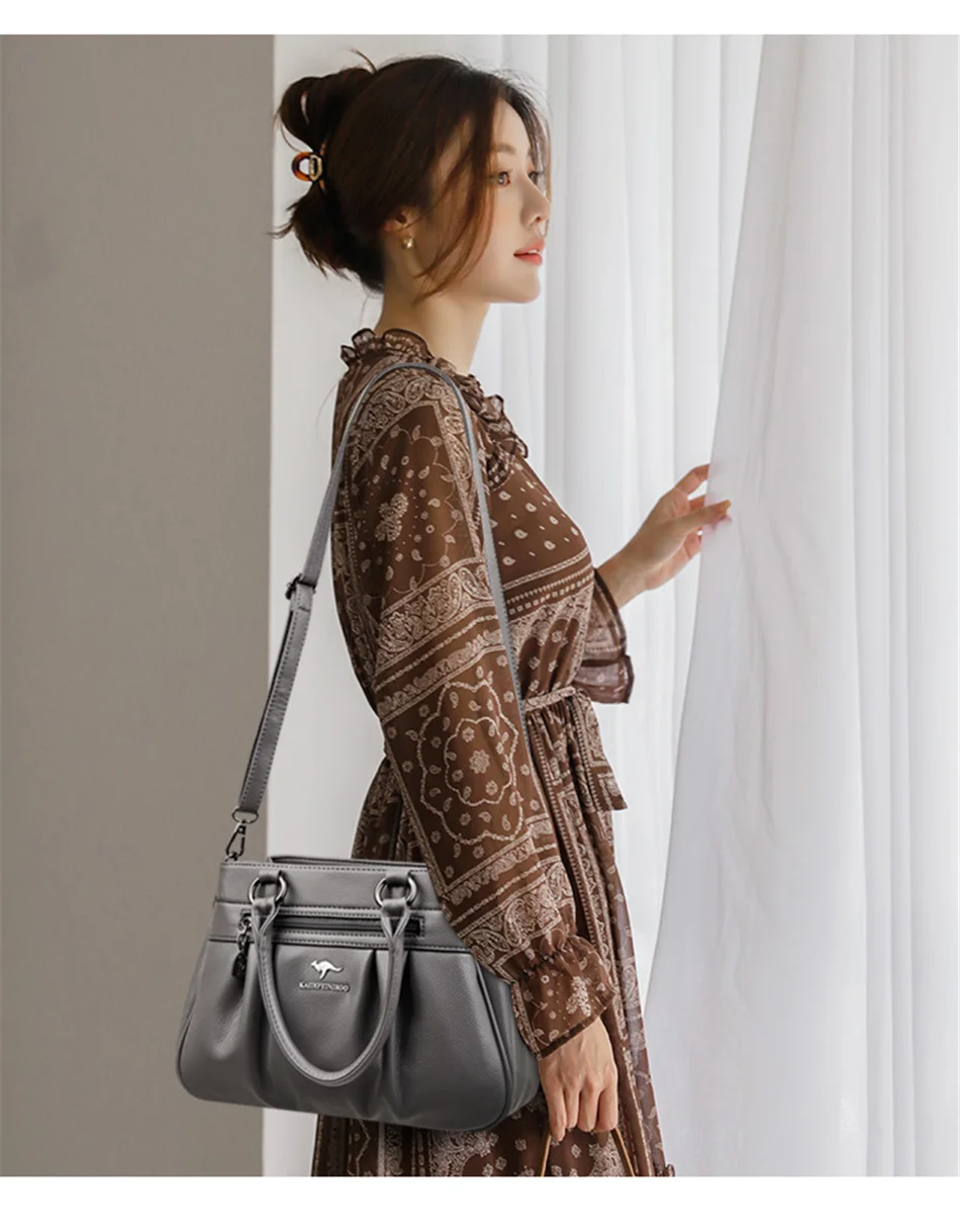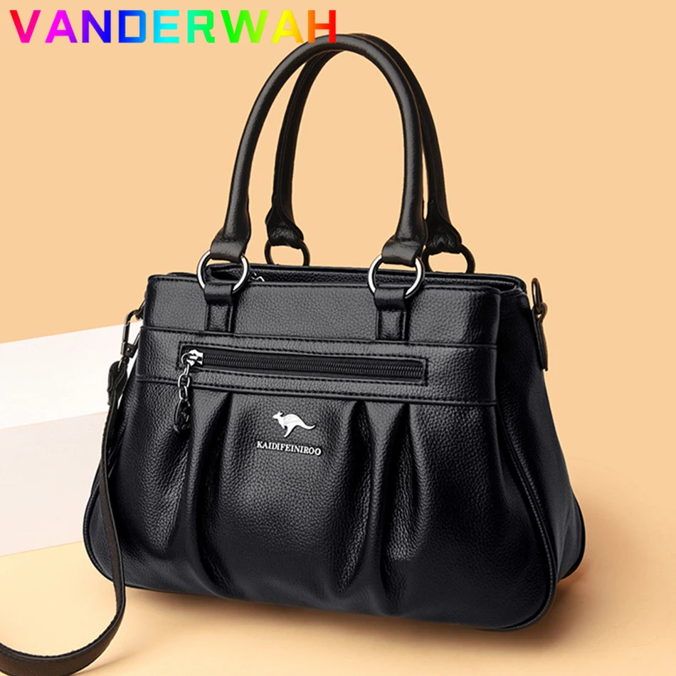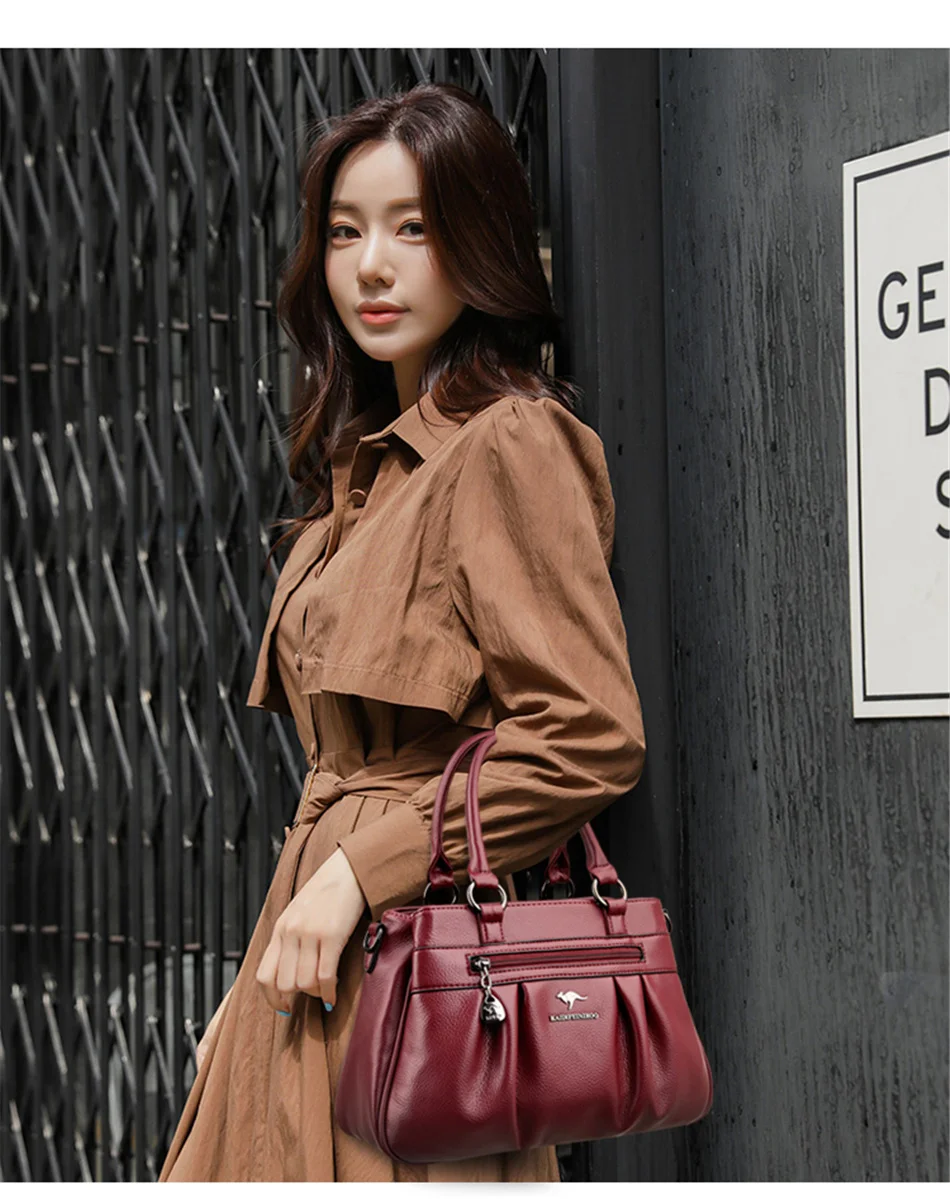 Сумка женская кожаная с ручками сверху, саквояж кросс-боди на плечо, Роскошный дизайнерский 3-слойный клатч