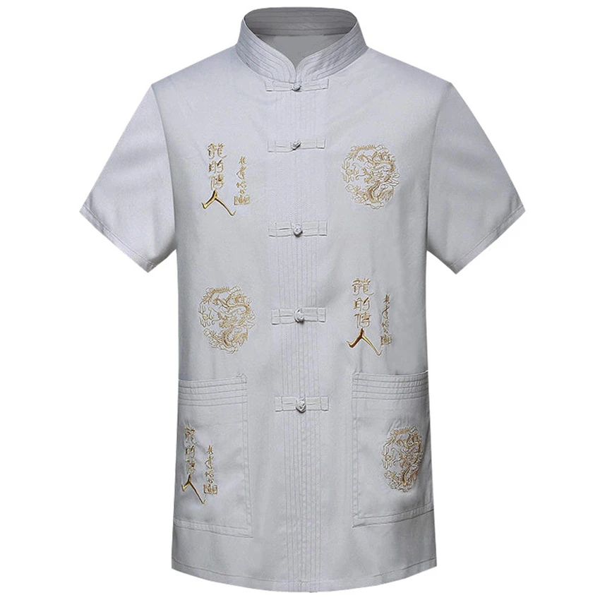 Летняя блузка с вышивкой и принтом дракона, топы, мужской костюм Тан, женская футболка, пальто кунг-фу, кардиган для отца в восточном стиле